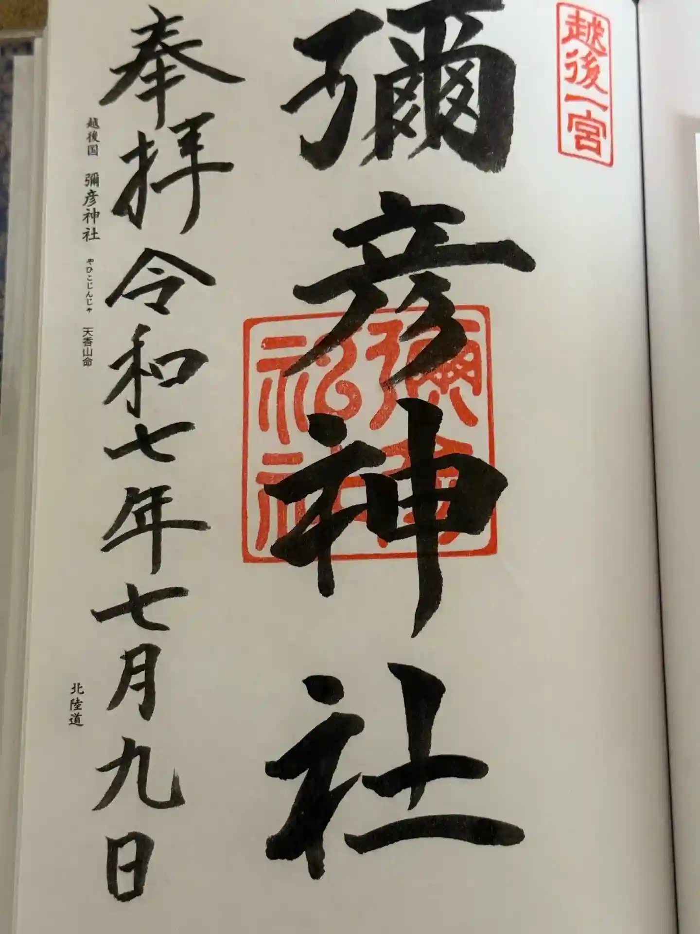 彌彦神社の御朱印を直書きでいただきました
