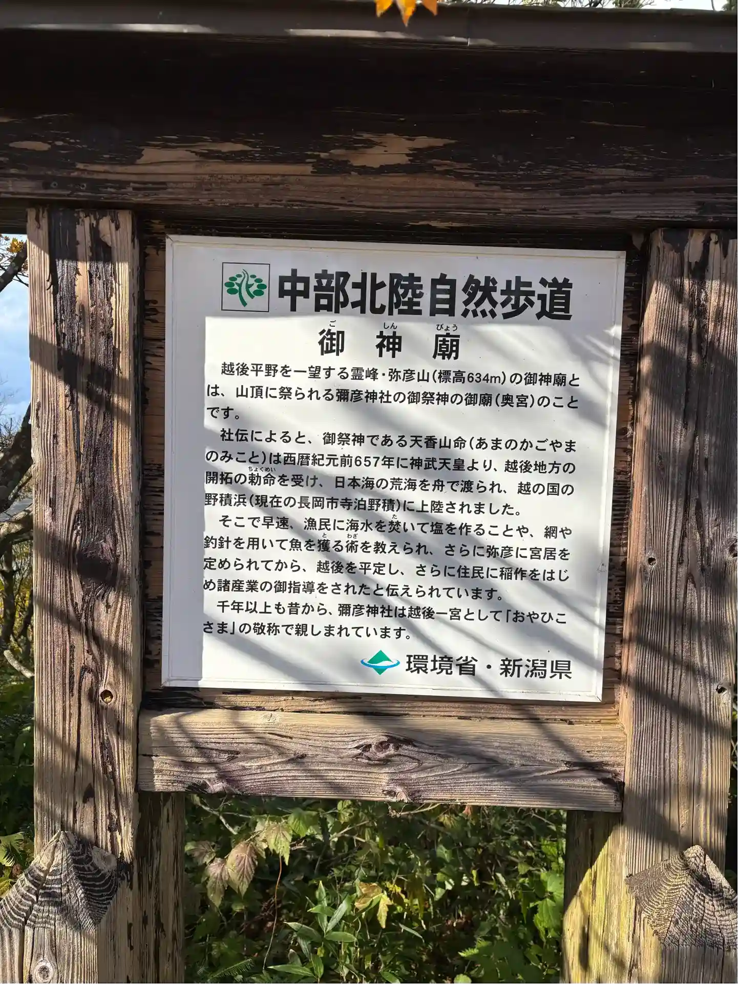 弥彦山山頂にあり、ロープウェイを降りて徒歩15分ほどです。