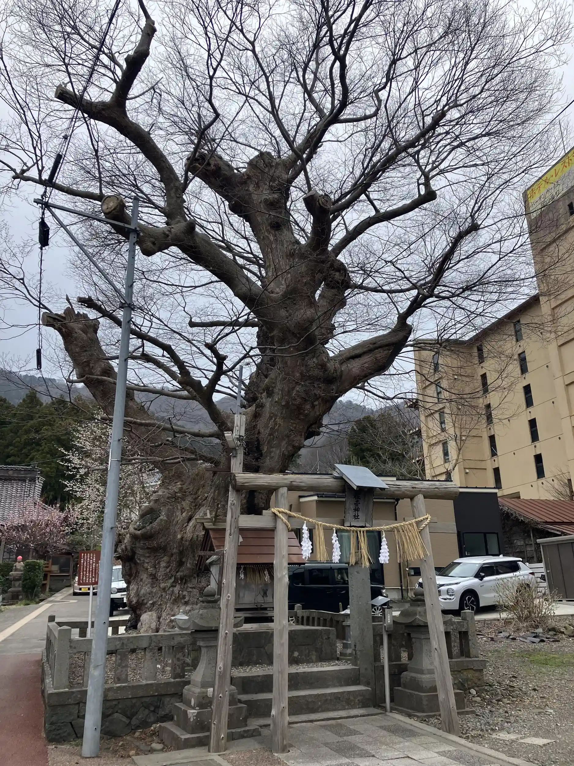 社殿裏の巨大なケヤキが、タコが足を広げた様子に似ているということでこのように呼ばれており、確かに迫力があって、存在感抜群です。