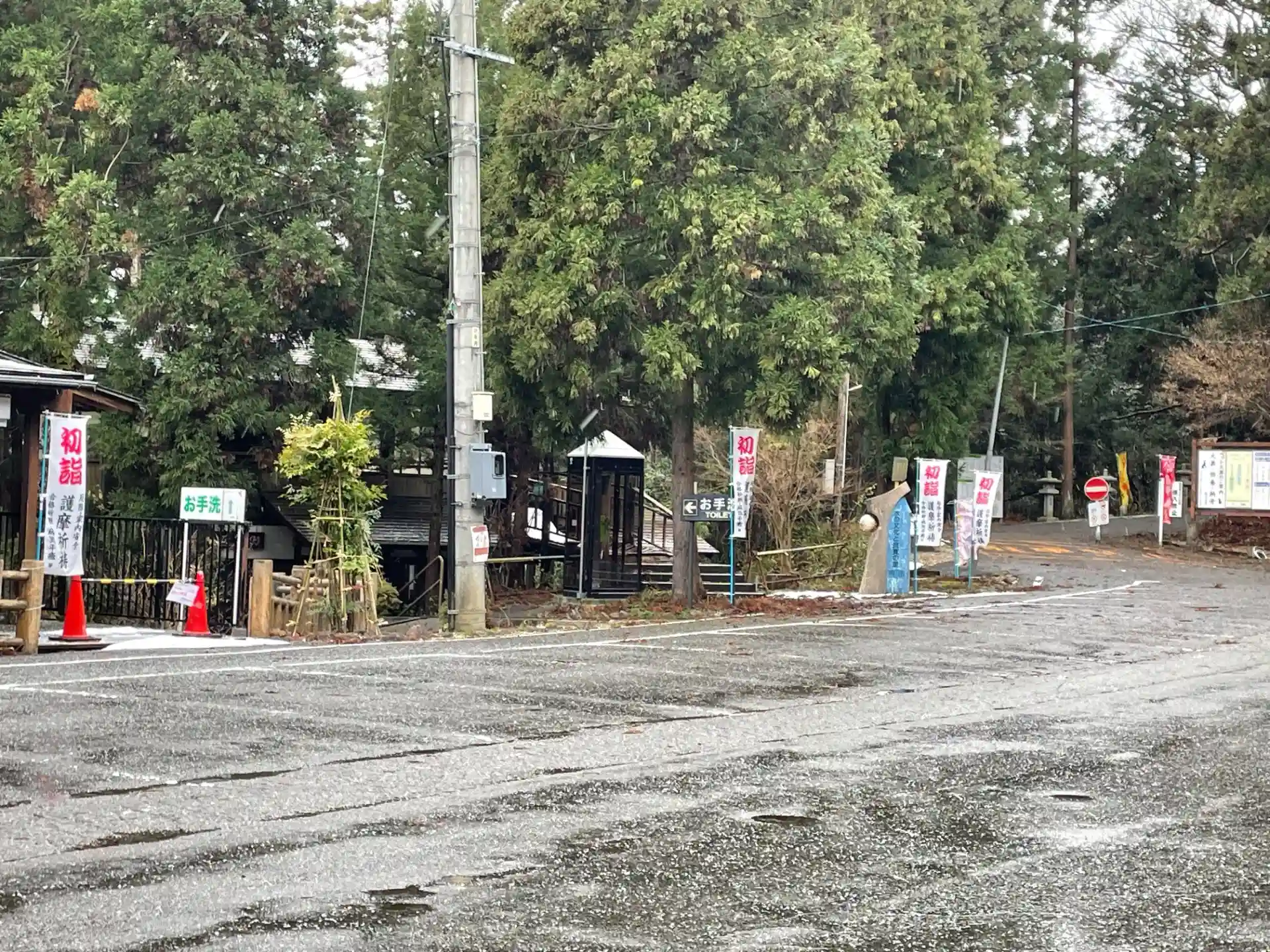 駐車場に、新年の御祈祷のぼりを立て、参拝者を迎え入れる為の準備が始まりました。