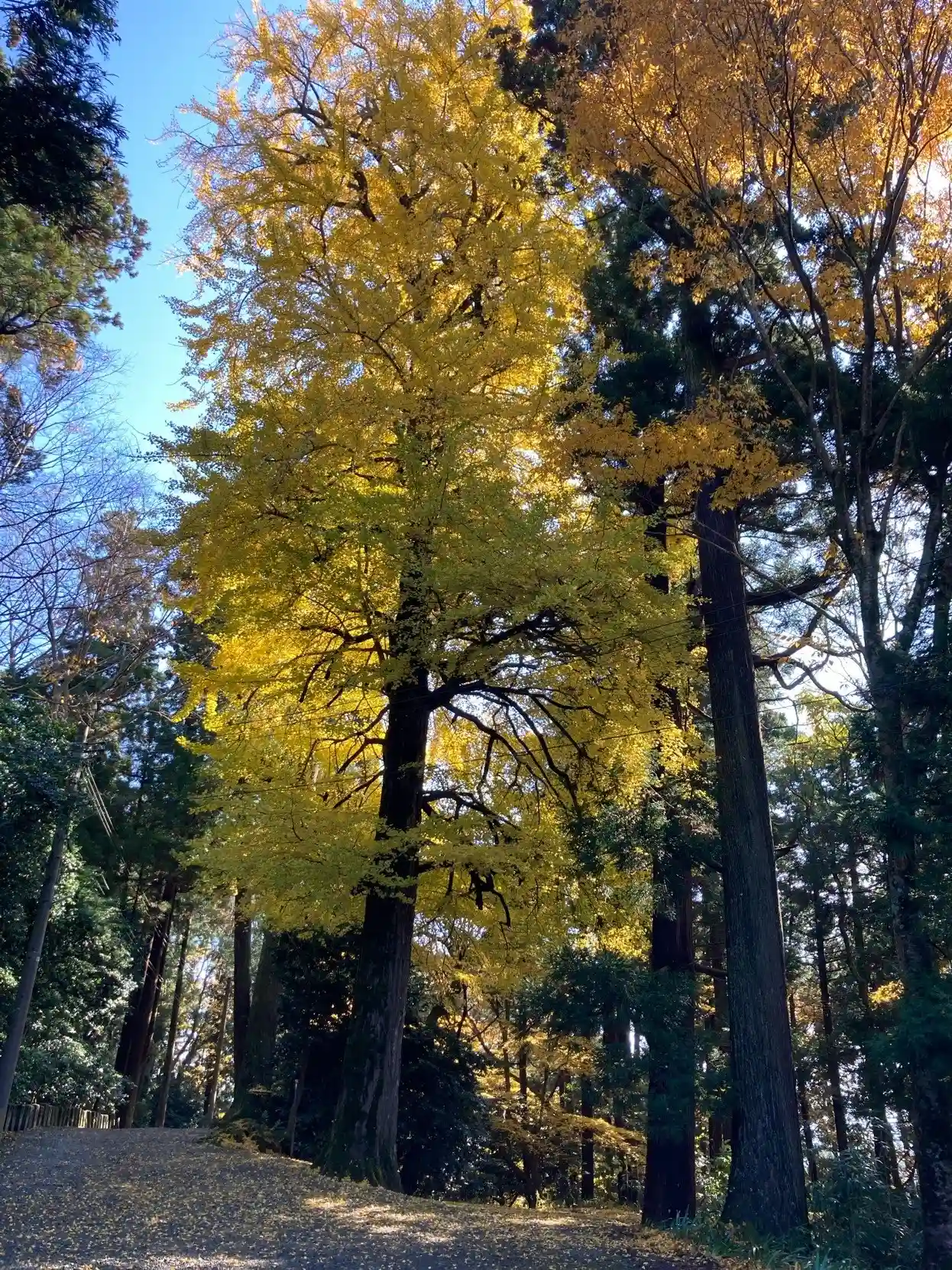 東山門前にある、当寺のパワースポット 樹齢千余年の大銀杏の葉が色付き始めました。