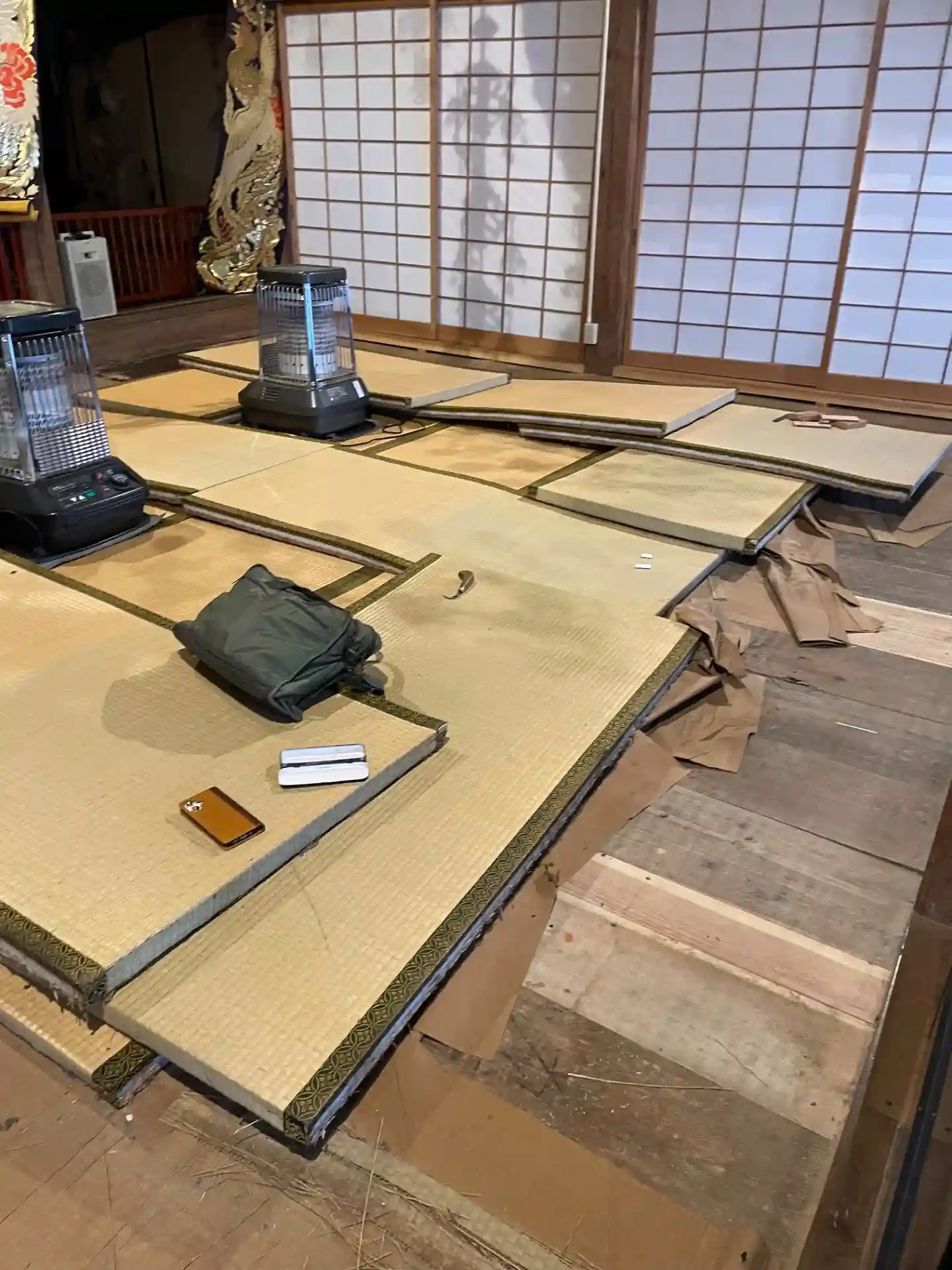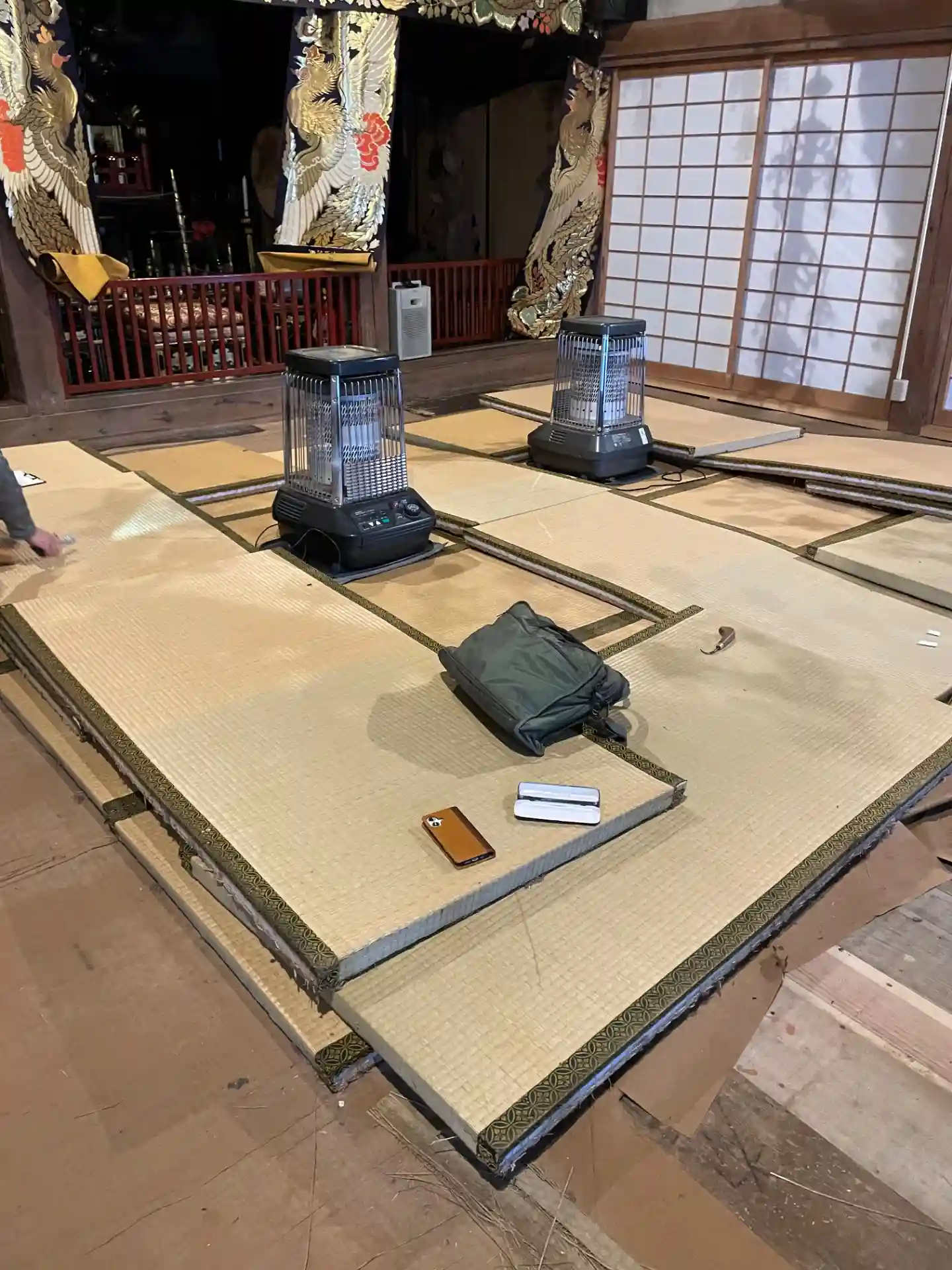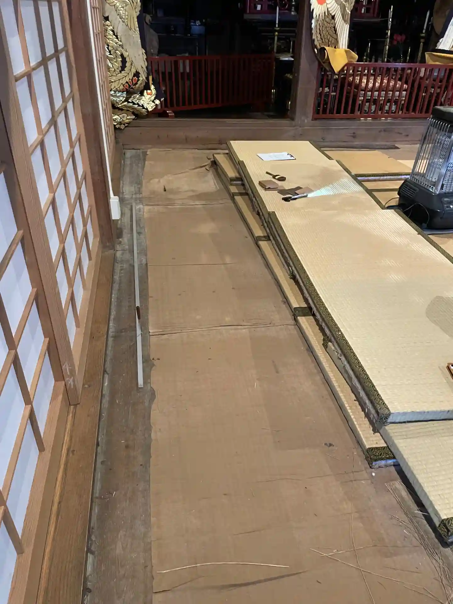 御開帳に向けて、方丈講堂内鏡の間の畳替えの準備です。