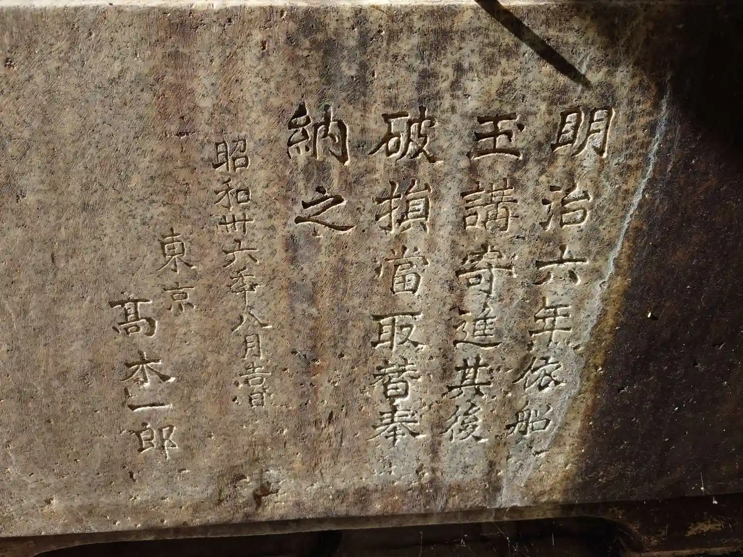 明治六年(1873)奉納の手水盤