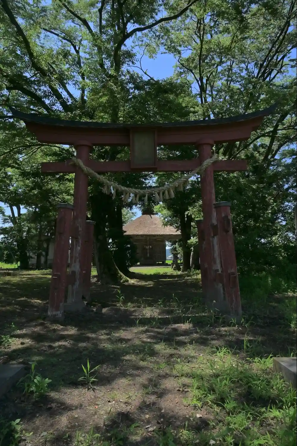 境内からの景色は夏と秋が好きなので、見に来ました。鳥居の先に参道はなく、田園風景が広がります(時代の流れを感じます)。