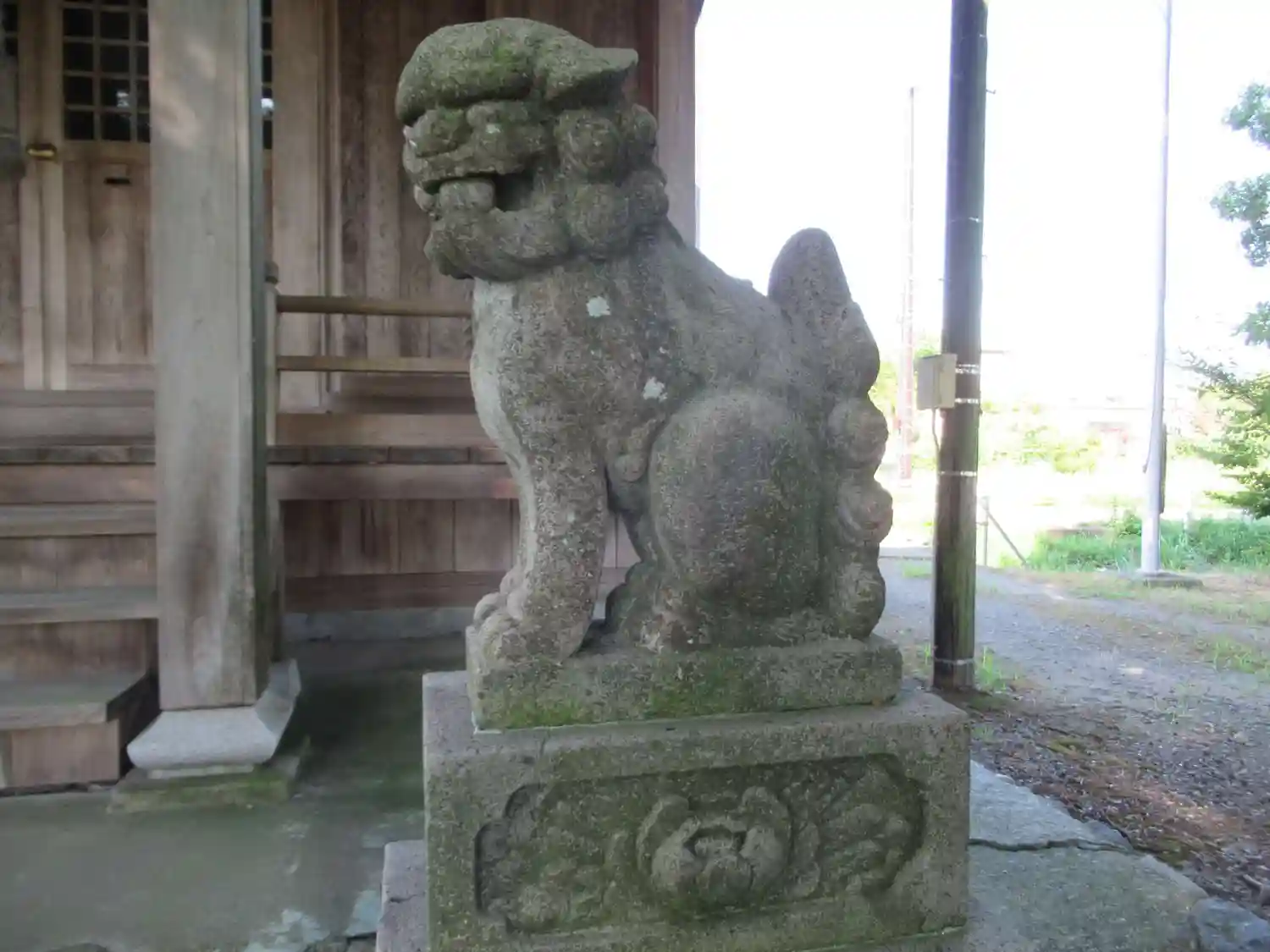 向かって右の狛犬は口に玉を加えています。