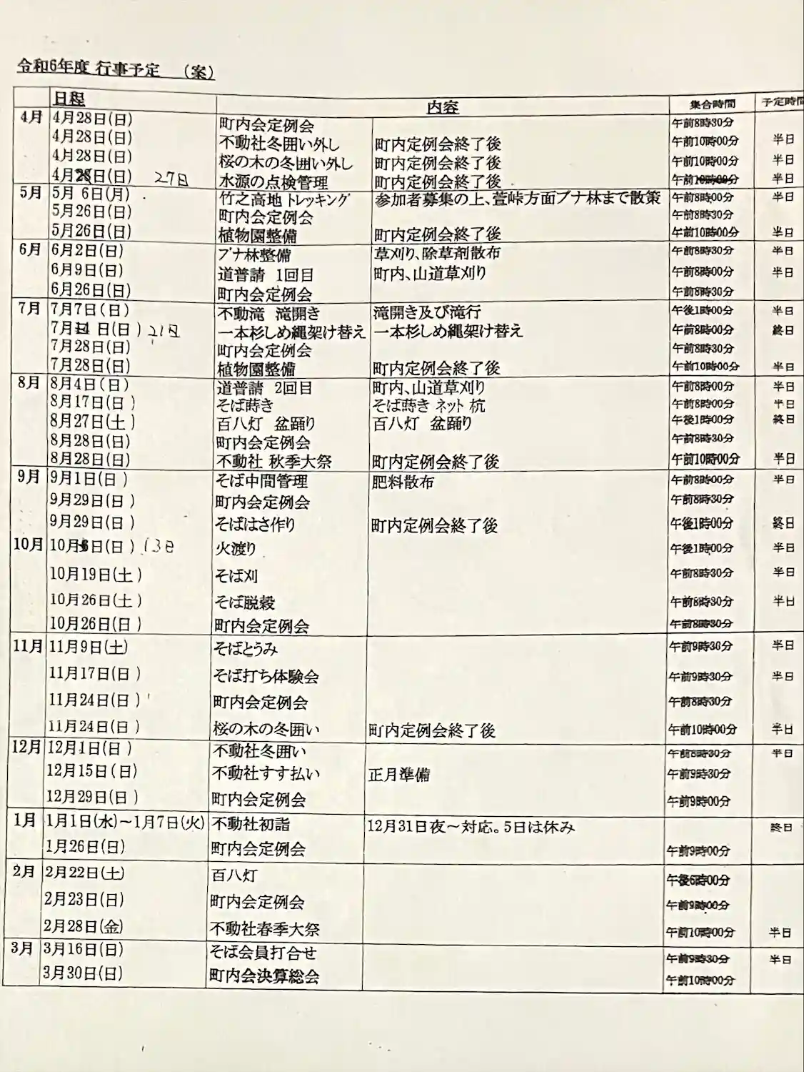 「前回忘れた」令和6年行事予定を載せます
