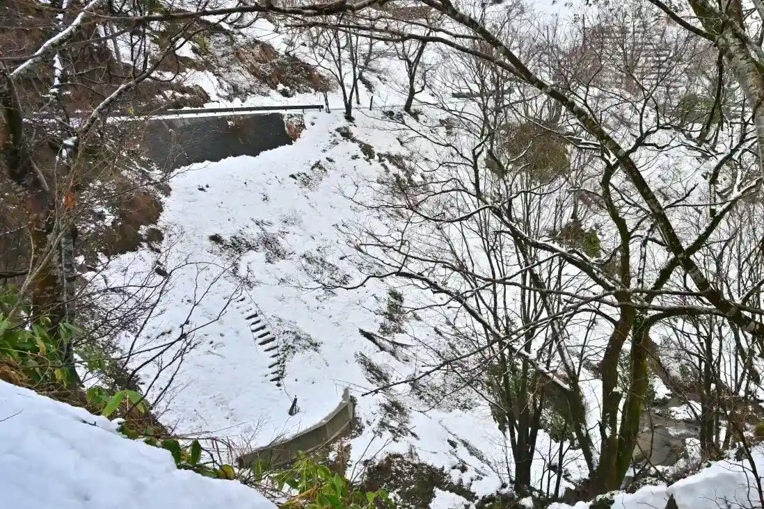 不動滝への階段も埋まっています