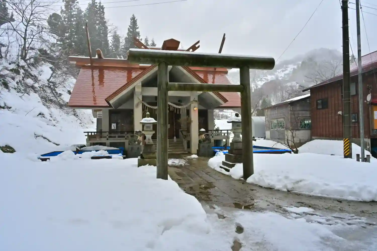 元旦 長岡市の奥座敷、蓬平のさらに奥 弘法大師の伝説が残る竹之高地に鎮座します 竹之高地不動社様 …