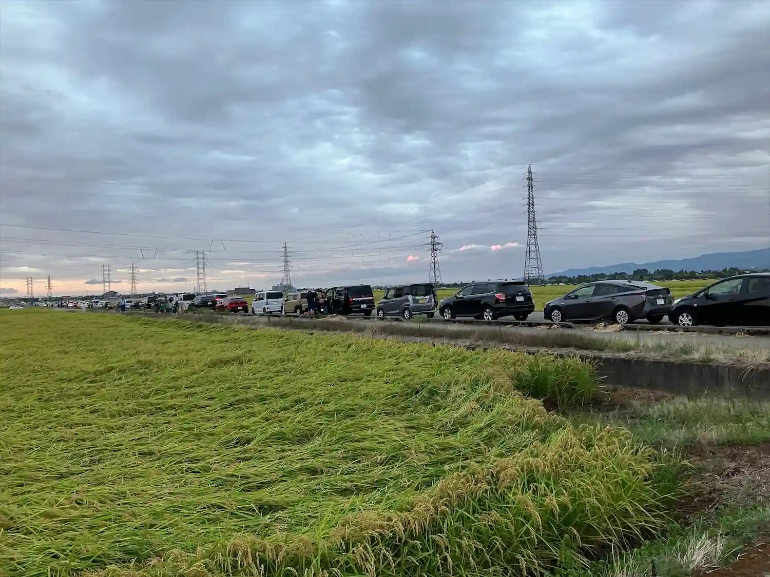 花火を見に来た方々の車の列