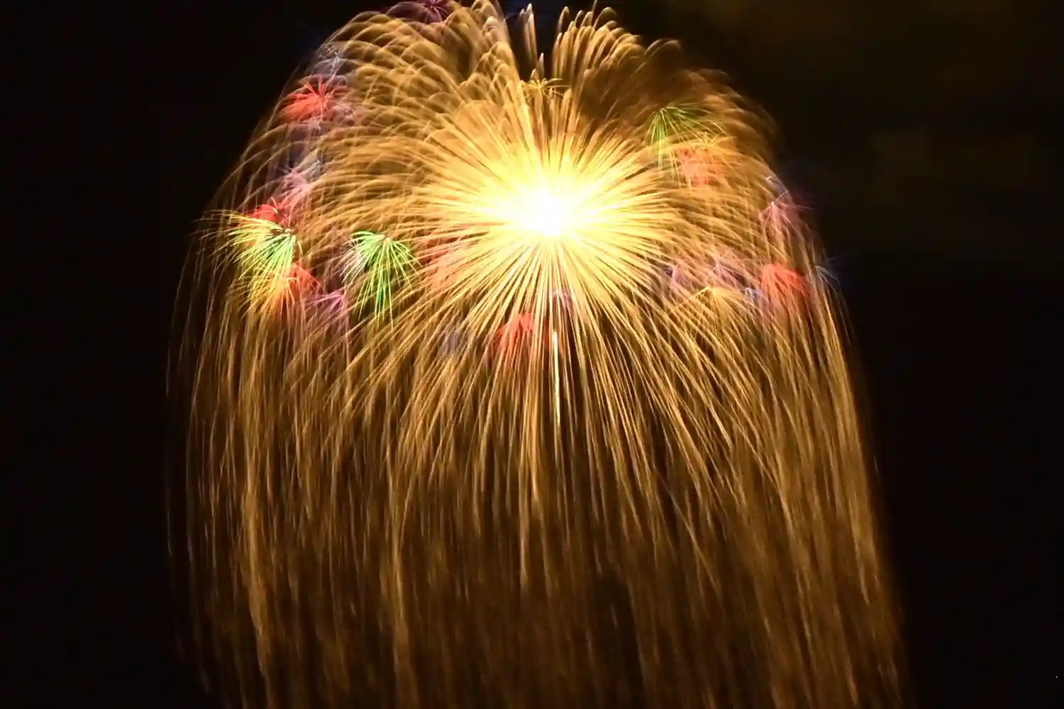 400年の伝統、三尺玉発祥の地、その名にそぐわない見事な花火が打ち上がり、鳴り響き、その輝きが片貝の天と地を照らしました
