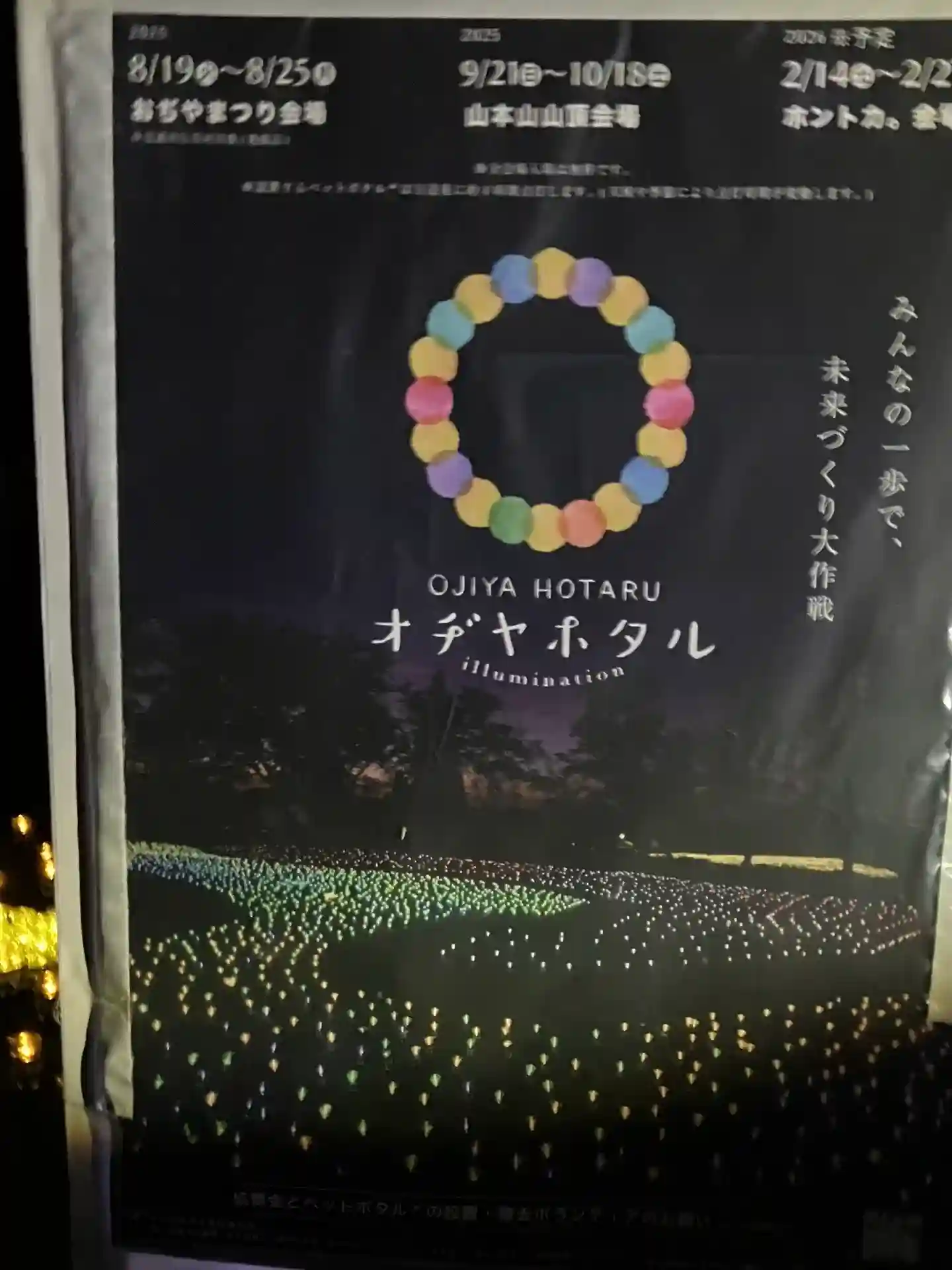 「オヂヤホタルロゴと天の川」のイルミネーションが行われています