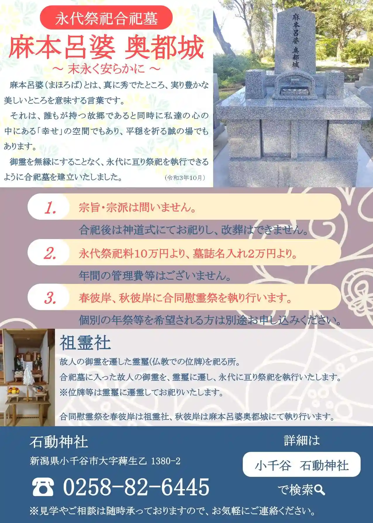 御霊を無縁にすることなく、永代に亘り祭祀を執行できるように合祀墓を建立いたしました。