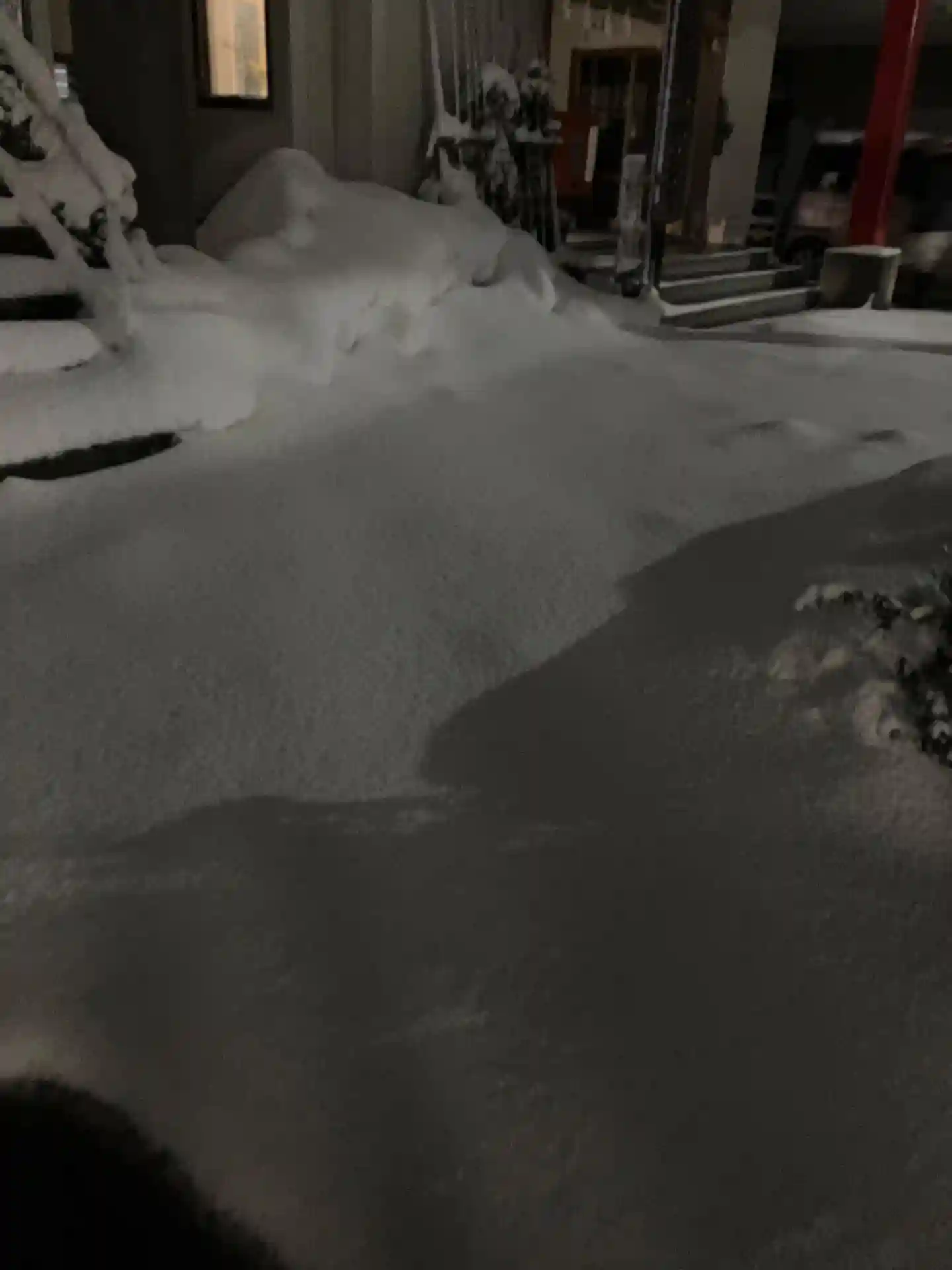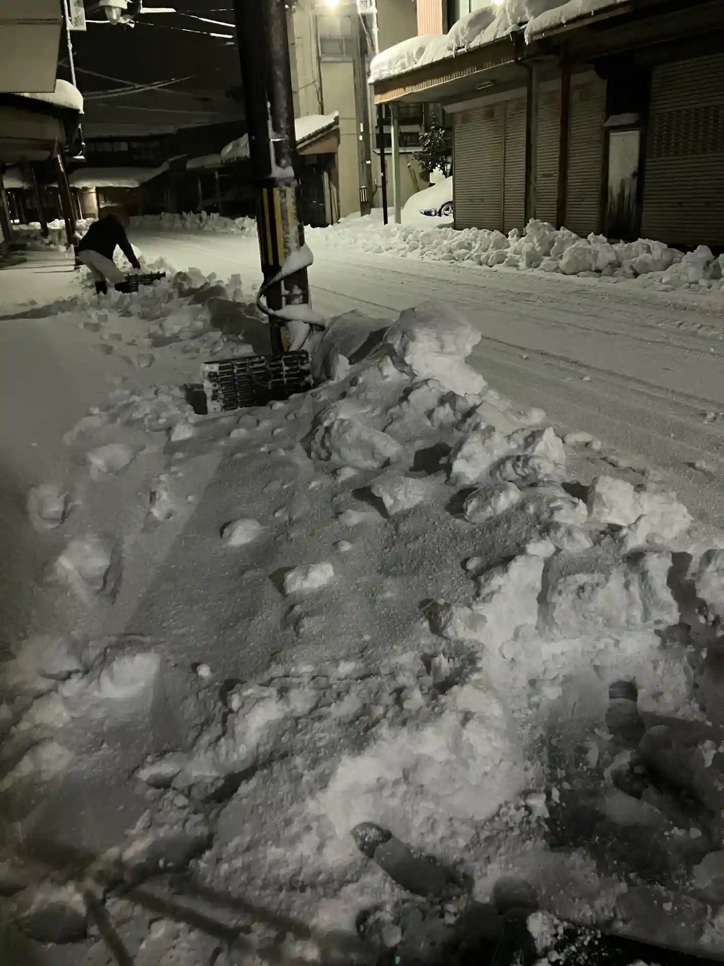 除雪前のまだ暗い中で、見づらい写真しかなく申し訳ありません。