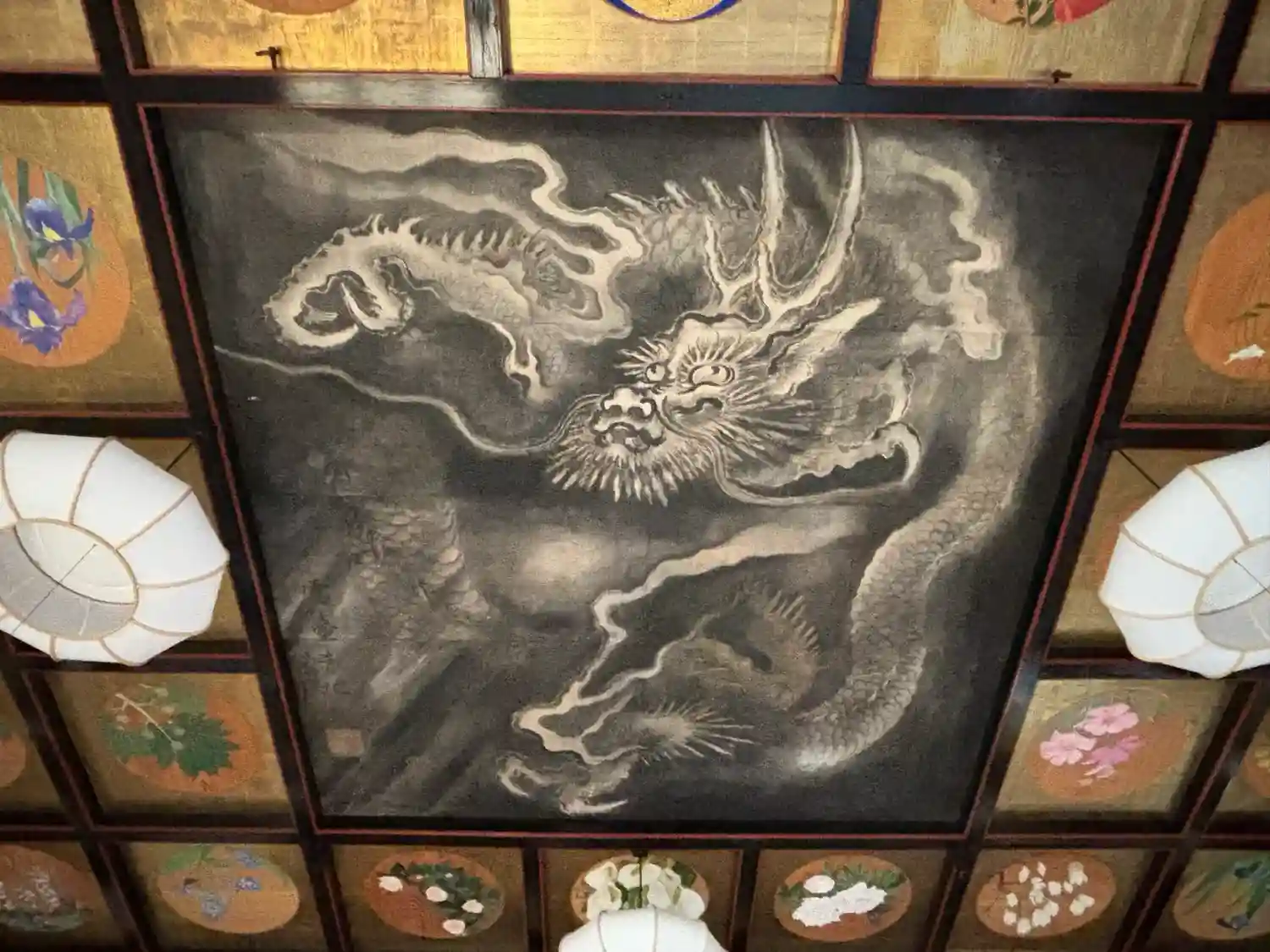 本殿の中は入る事が出来るので天井画を見て来ました。