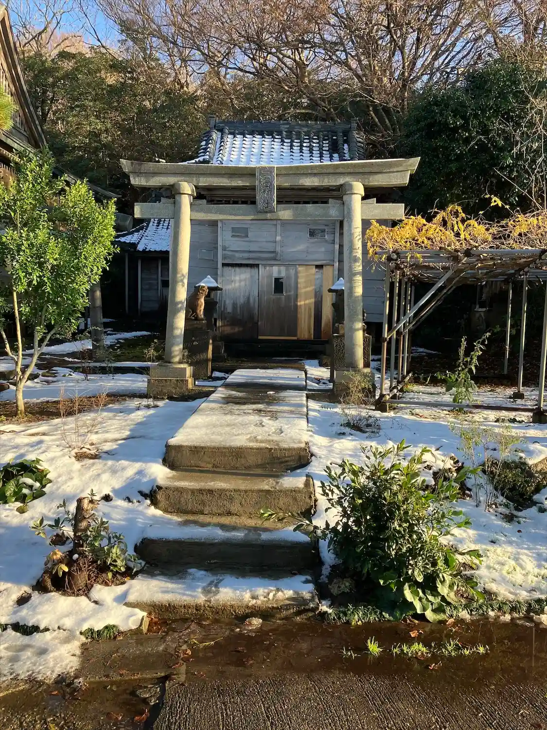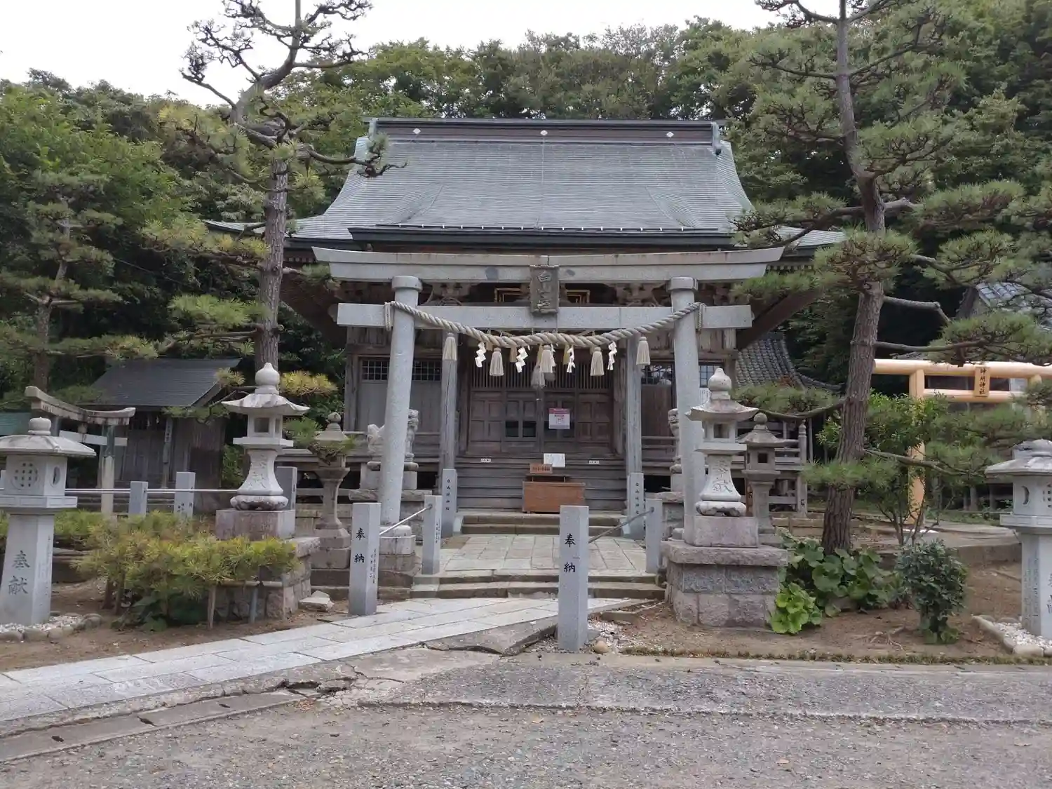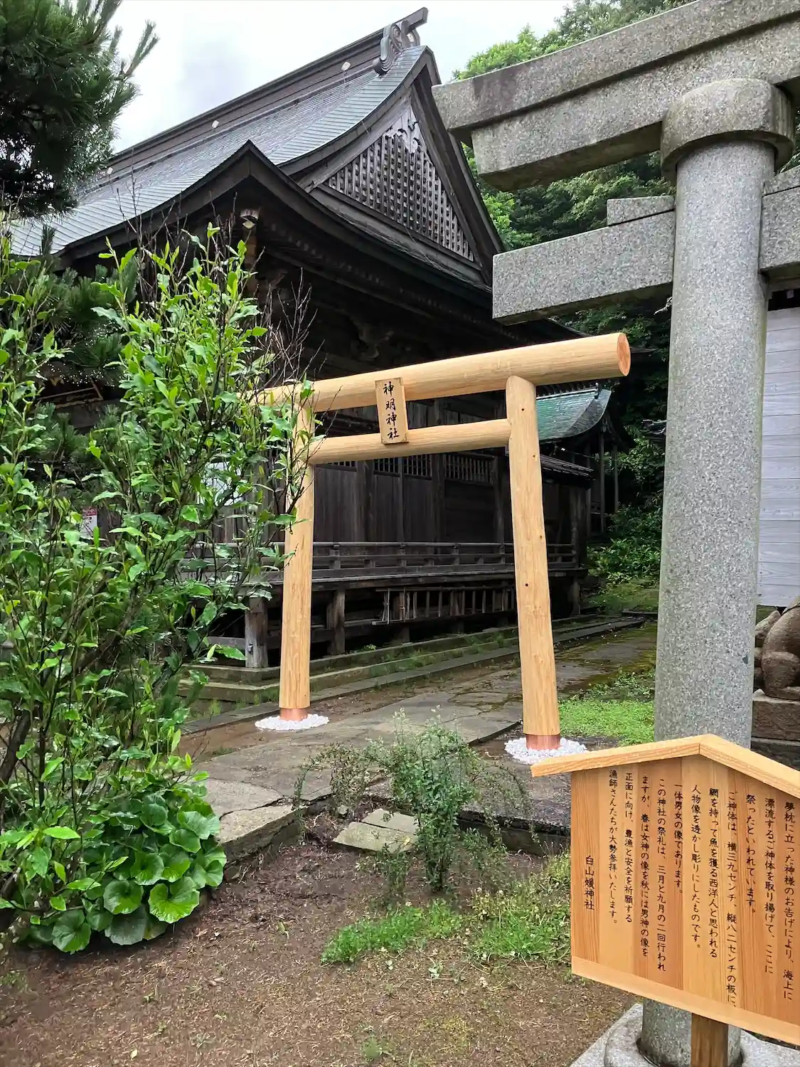 神明社の鳥居が新しくなっています