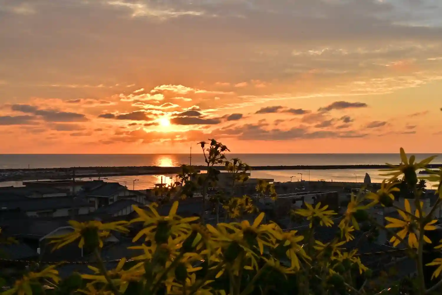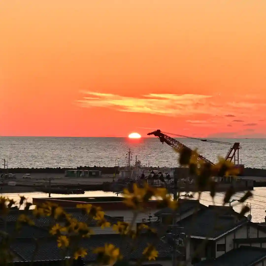 十一月十五日 長岡市寺泊に鎮座します 白山媛神社様 「困難に負けない」つわぶきの花と、夕日を見に参…
