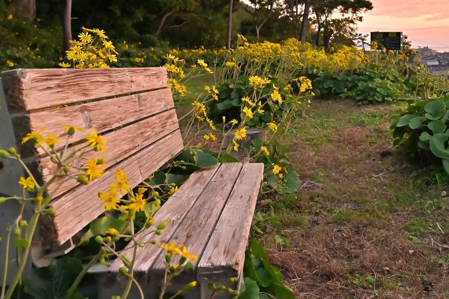 石段の途中から、つわぶき坂に行けますので 夕日、つわぶきの花はこちらから