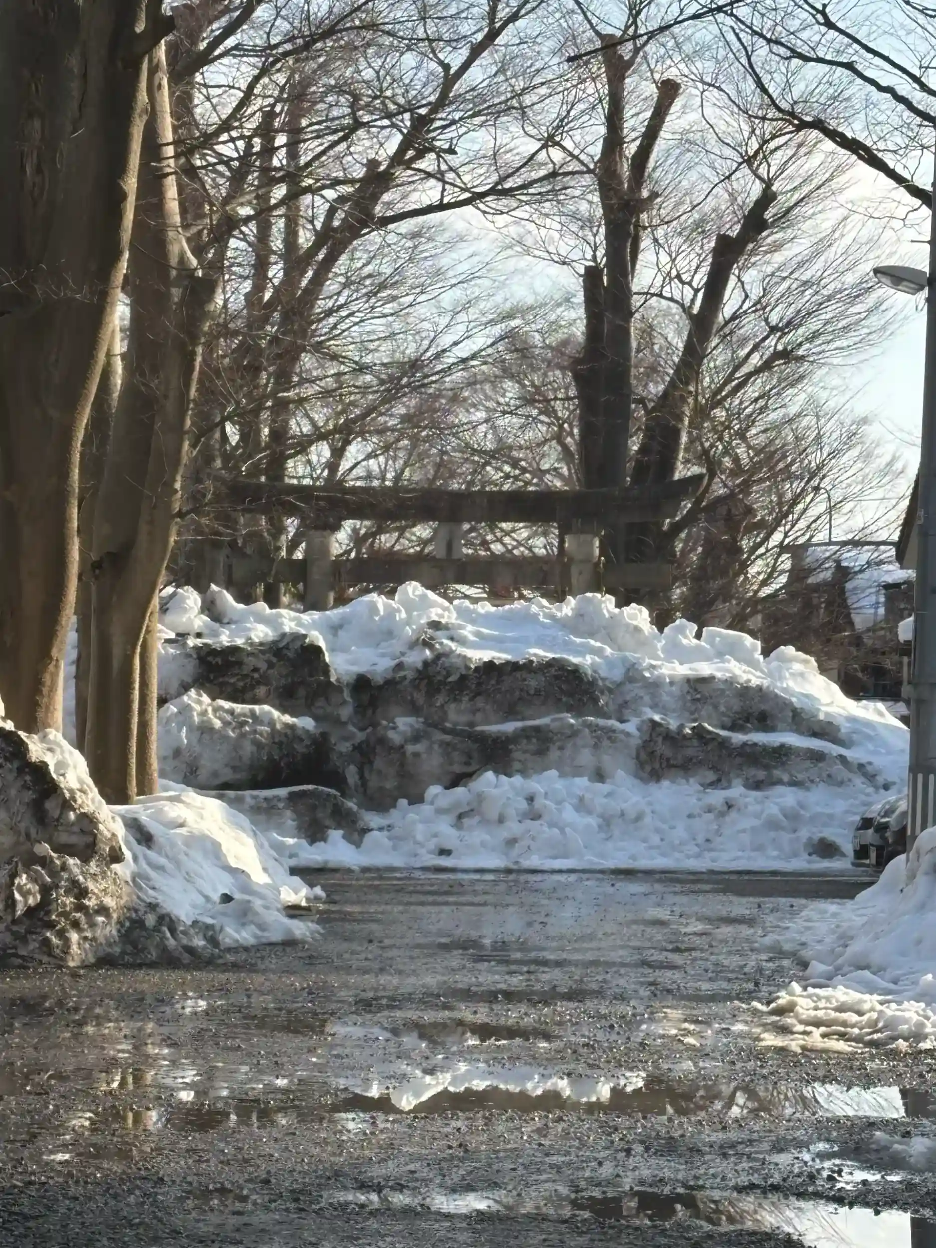 ちなみに二の鳥居前には除雪した雪で通行止めです