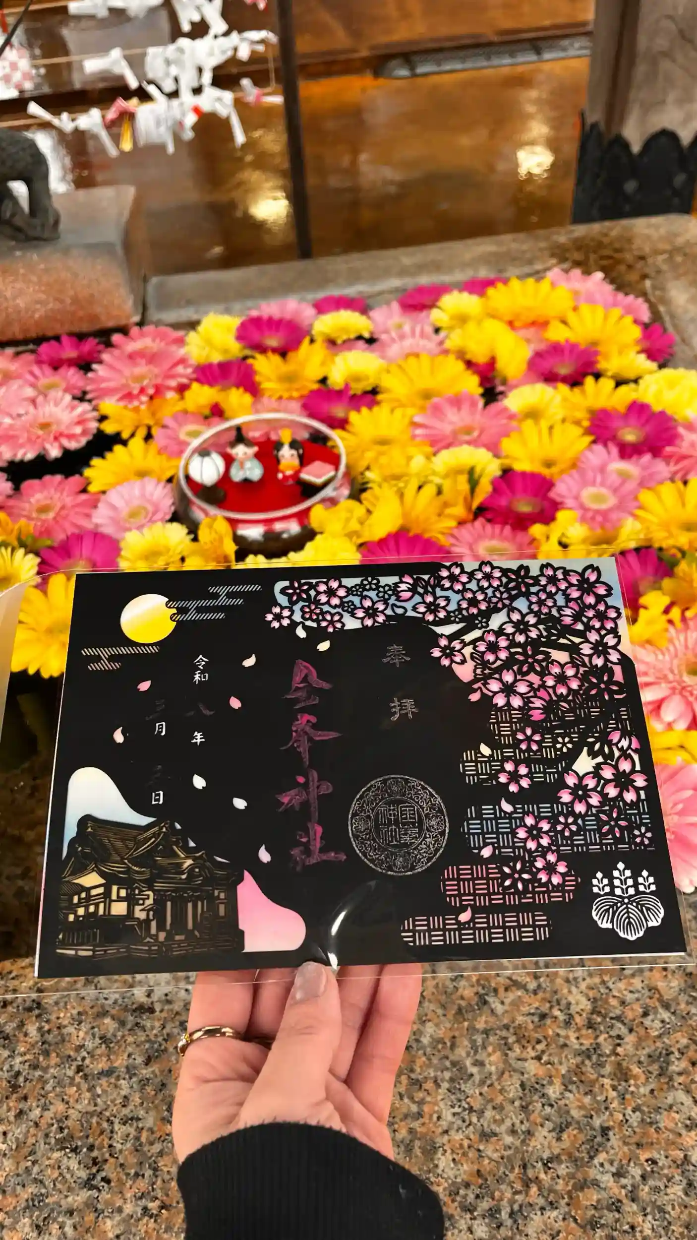 金の梅スタンプたっぷりと押してくださって^^ 乾かすのに 少々