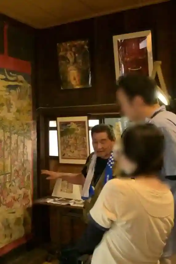「蔵王堂城史跡を守る会」の会長様も参拝の方々に掛け軸などの説明をしております
