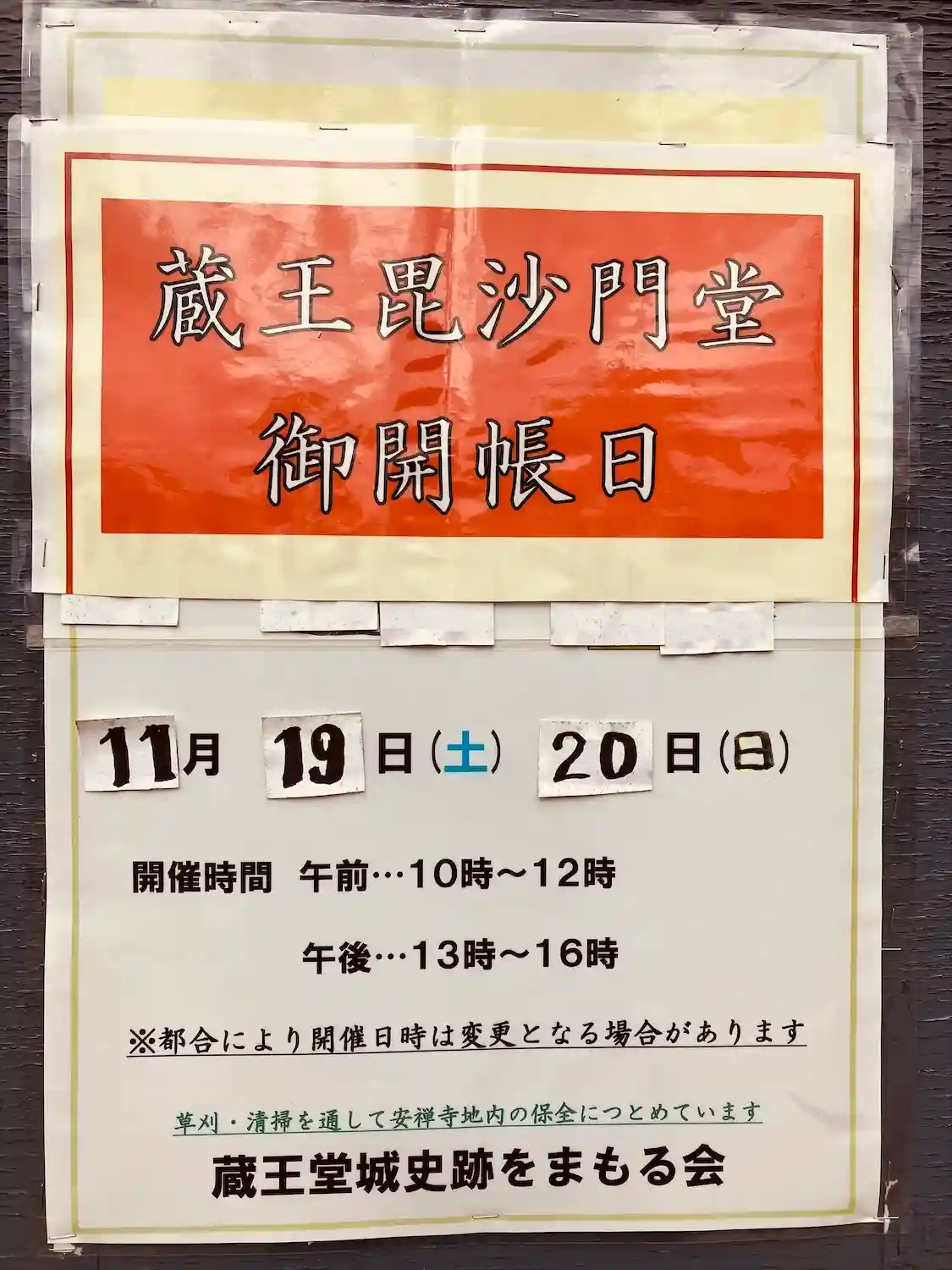 御開帳の毘沙門天様の写真がありました