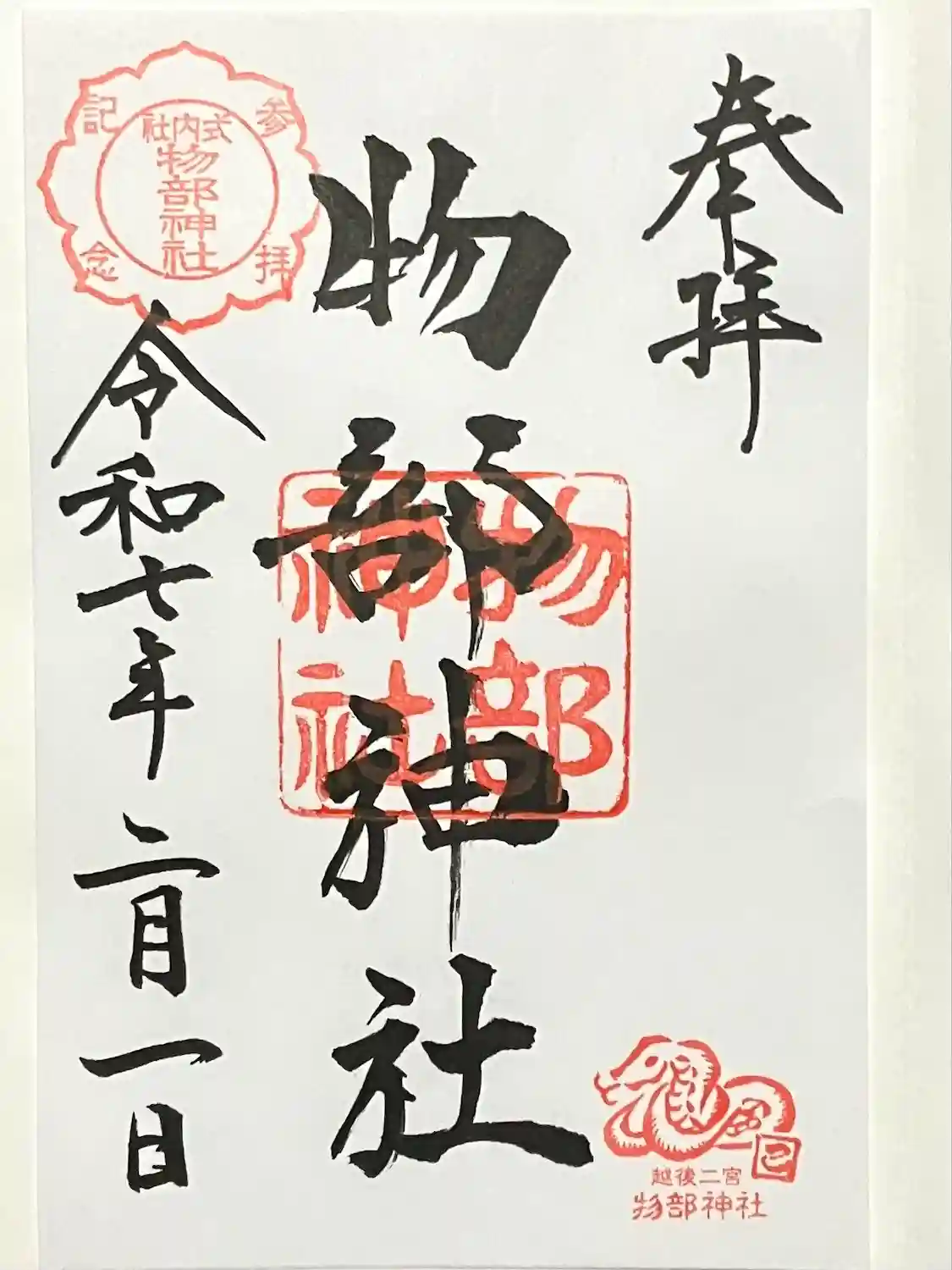 御朱印は書き置きですが、物部神社の宮司様はしっかり日付けも書いていらっしゃいます(ありがとうございます💦)