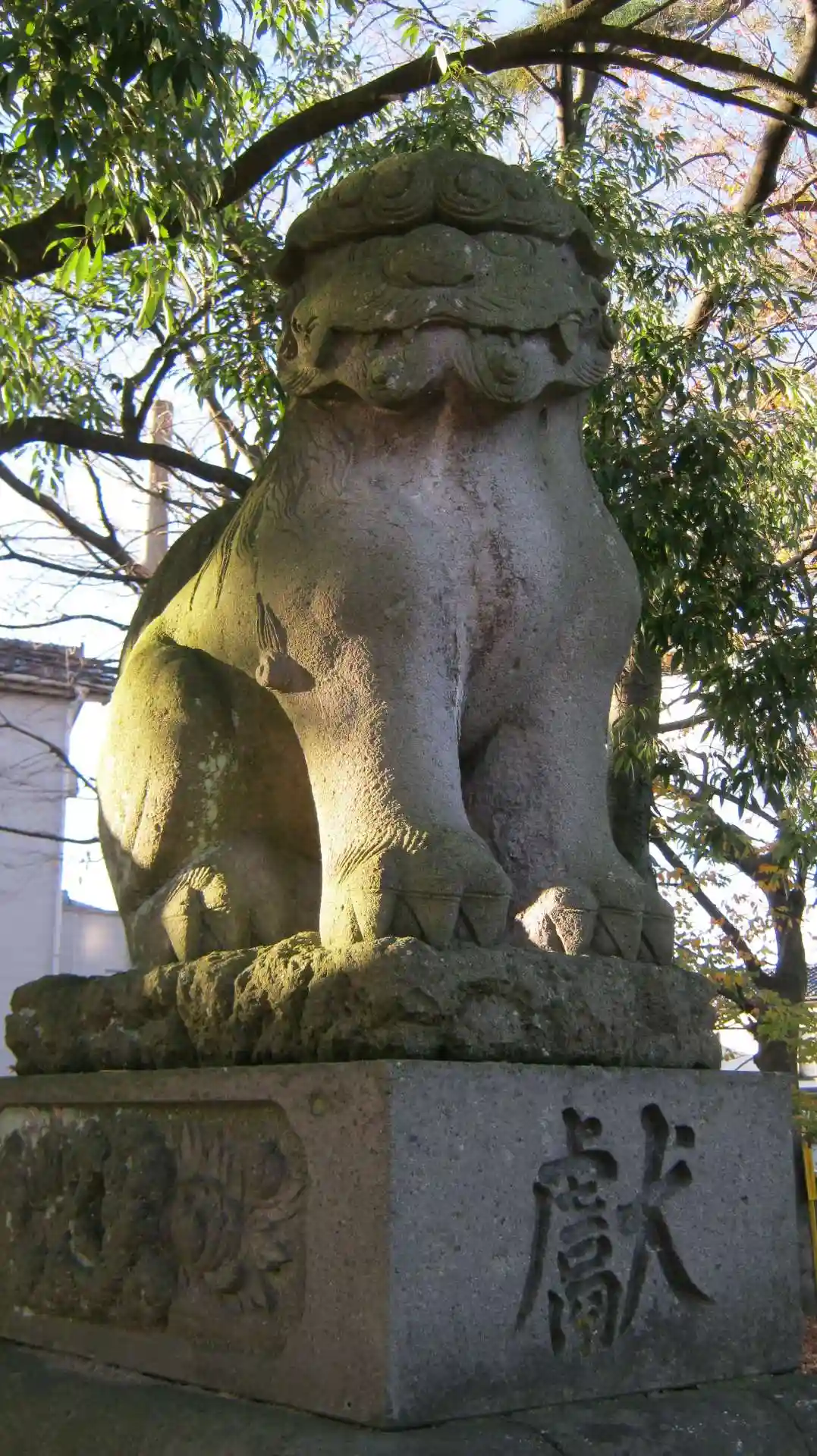 こちらは尾を立て迫力がある狛犬様です。