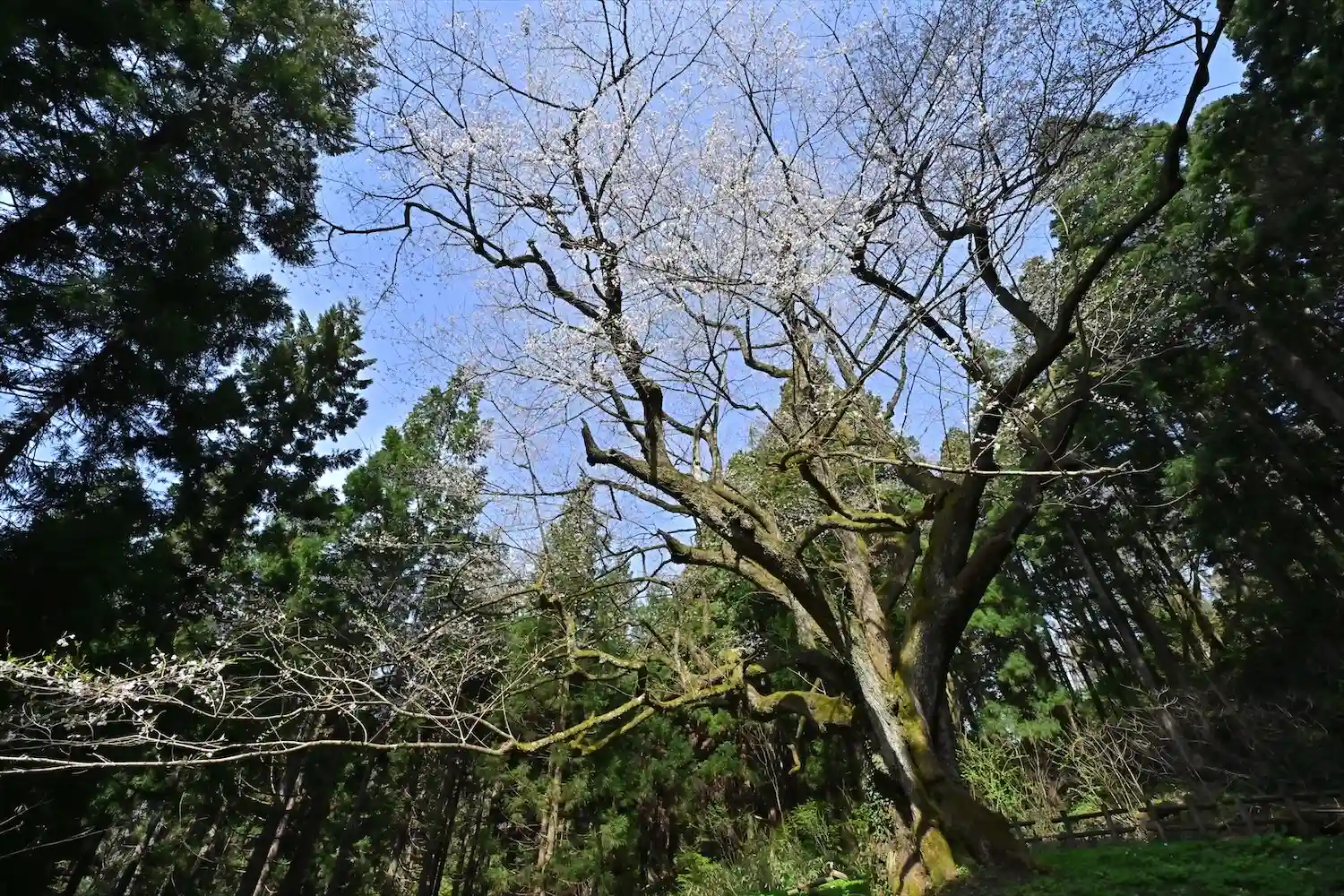 四月十一日 上越市三和区岡田の山中に鎮座します 風巻神社奥社参拝、風巻神代桜を見てきました! 奥社は風巻神社旧拝殿跡近くにあり、神代桜はエドヒガンザクラ 目通り周が5.3メートル、樹高30メートル 樹齢200年から300年と言われている一本桜 上越市天然記念物になります 奥社ルート奥に天然記念物の風巻ブナ林もあります