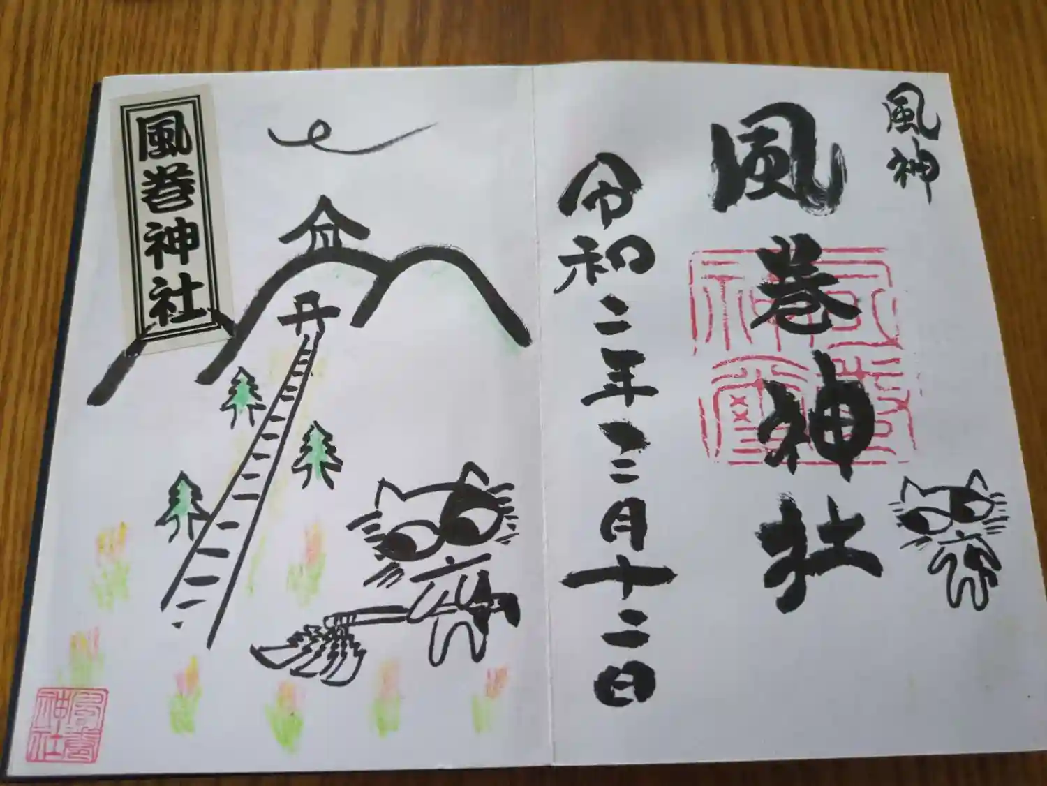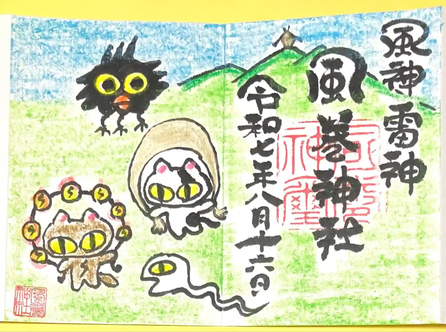型抜き御朱印 風巻神社 ヤタガラス
