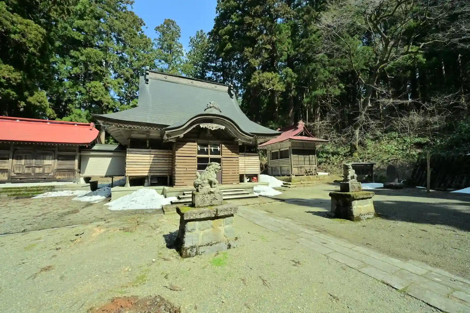 社殿 前の2つの山は狛犬さん達😅
