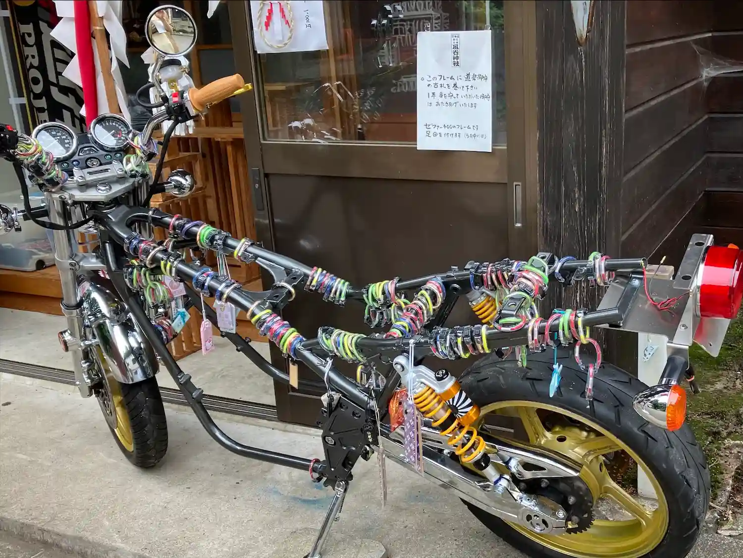 茅の輪越しにバイク