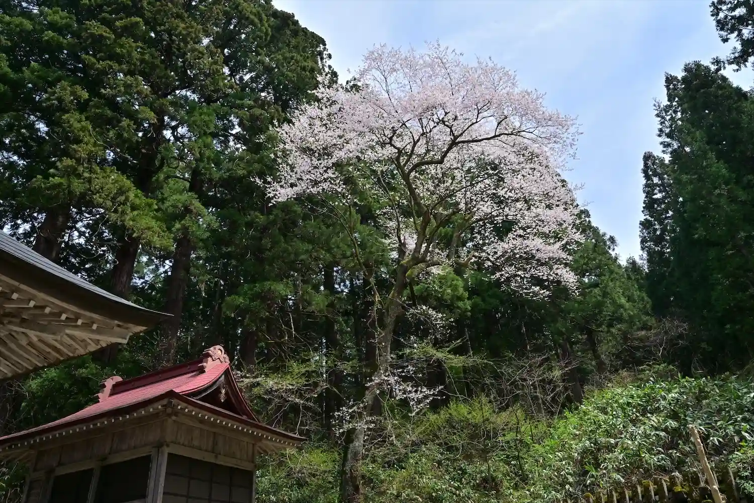 風巻神社 社殿の桜満開