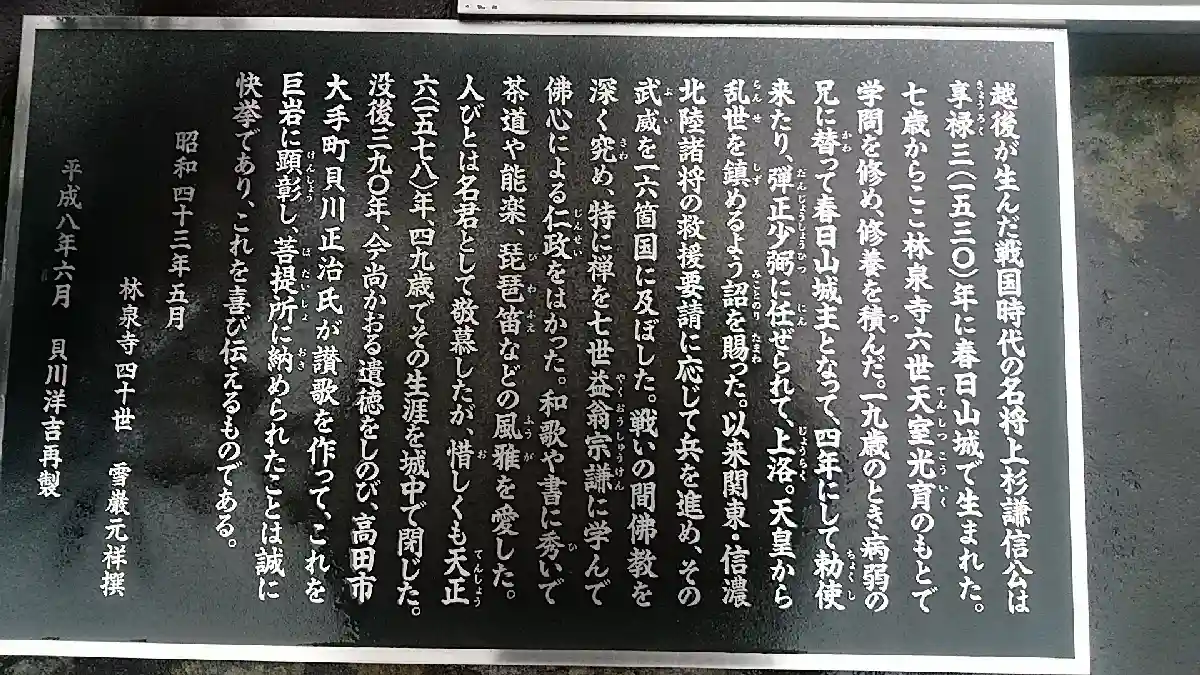 上杉謙信公が、7歳からこの林泉寺で修養を積んだ。