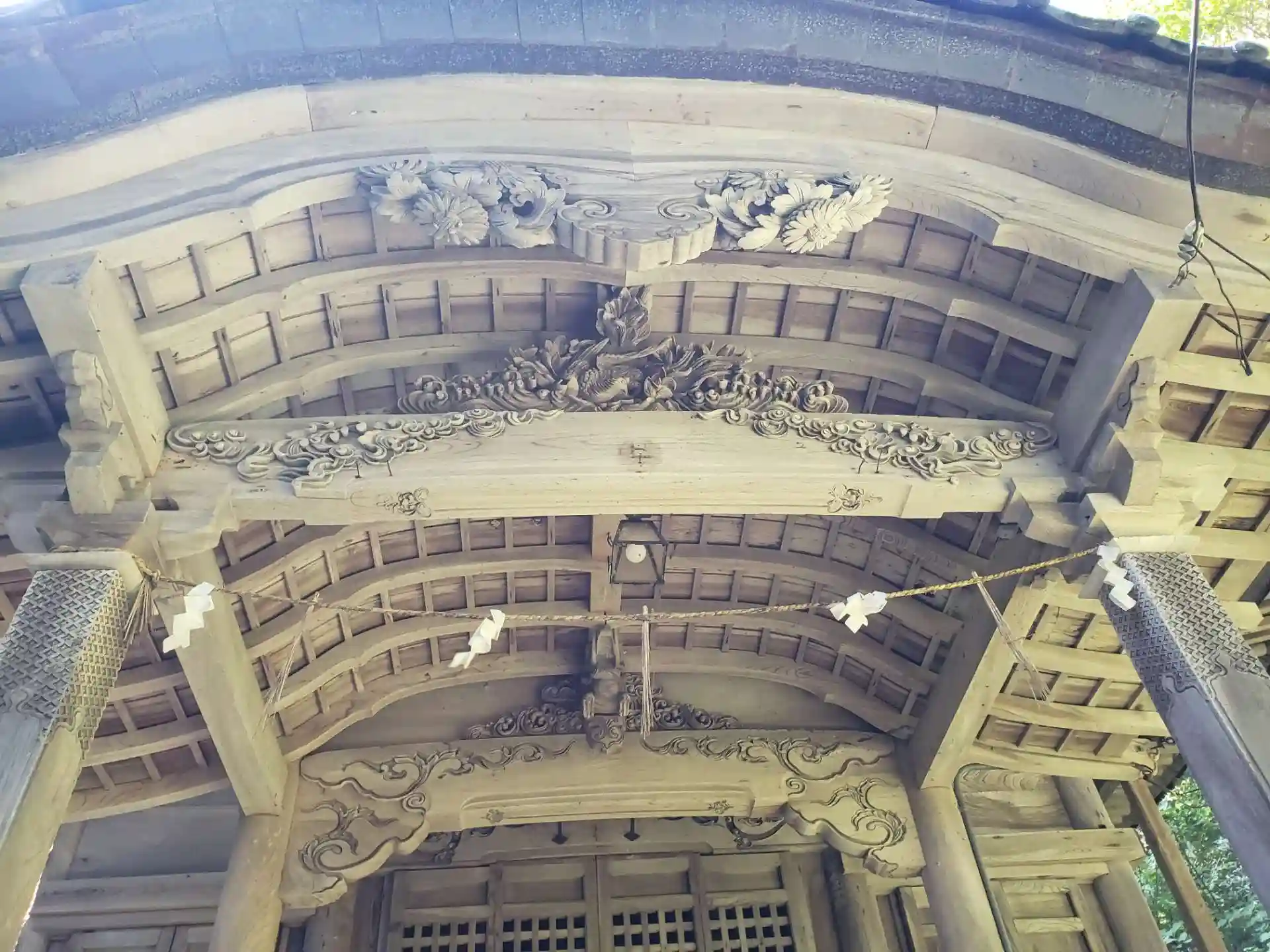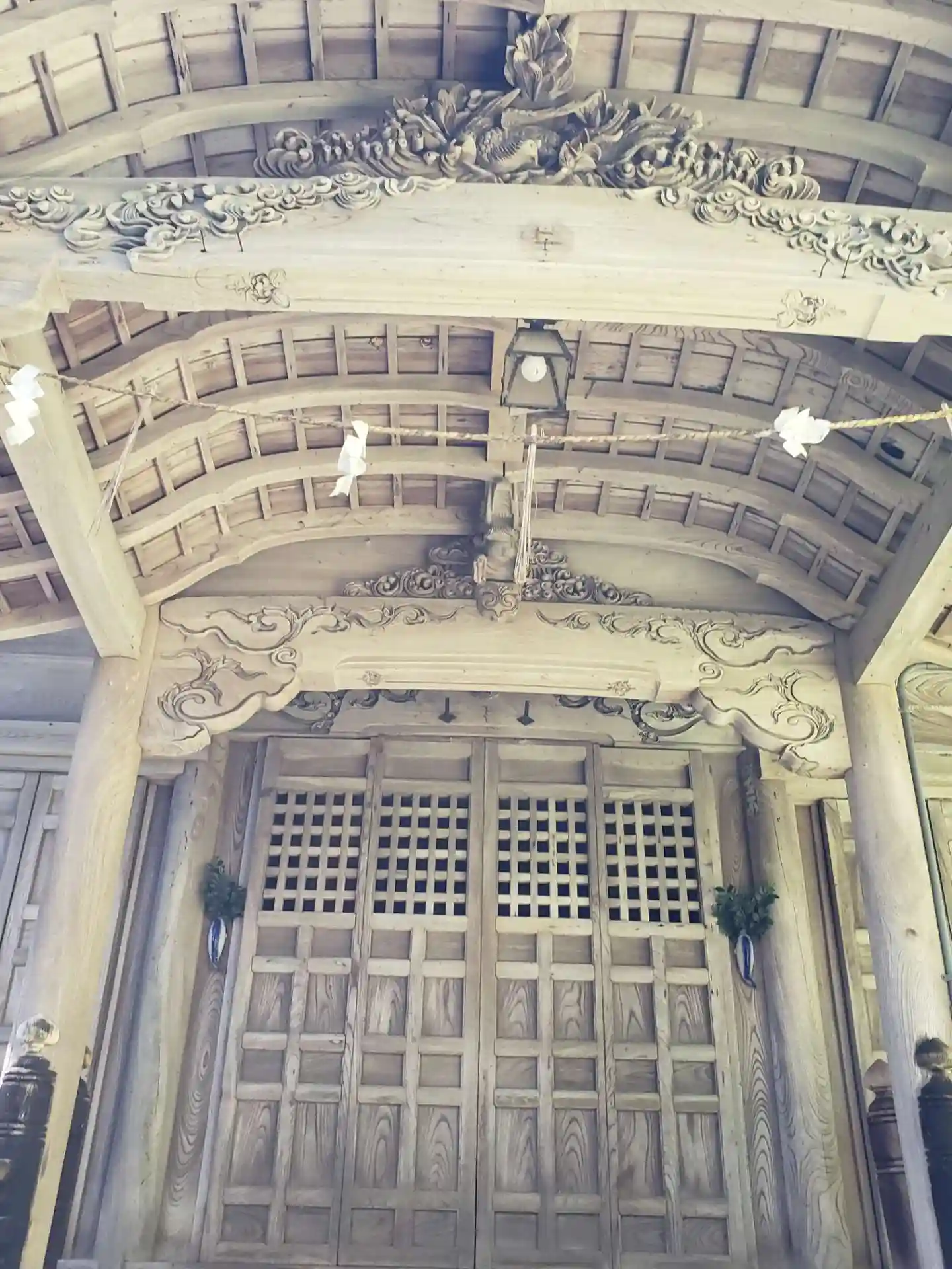 静かな森にたたずむ神社です。木彫りが素敵です。