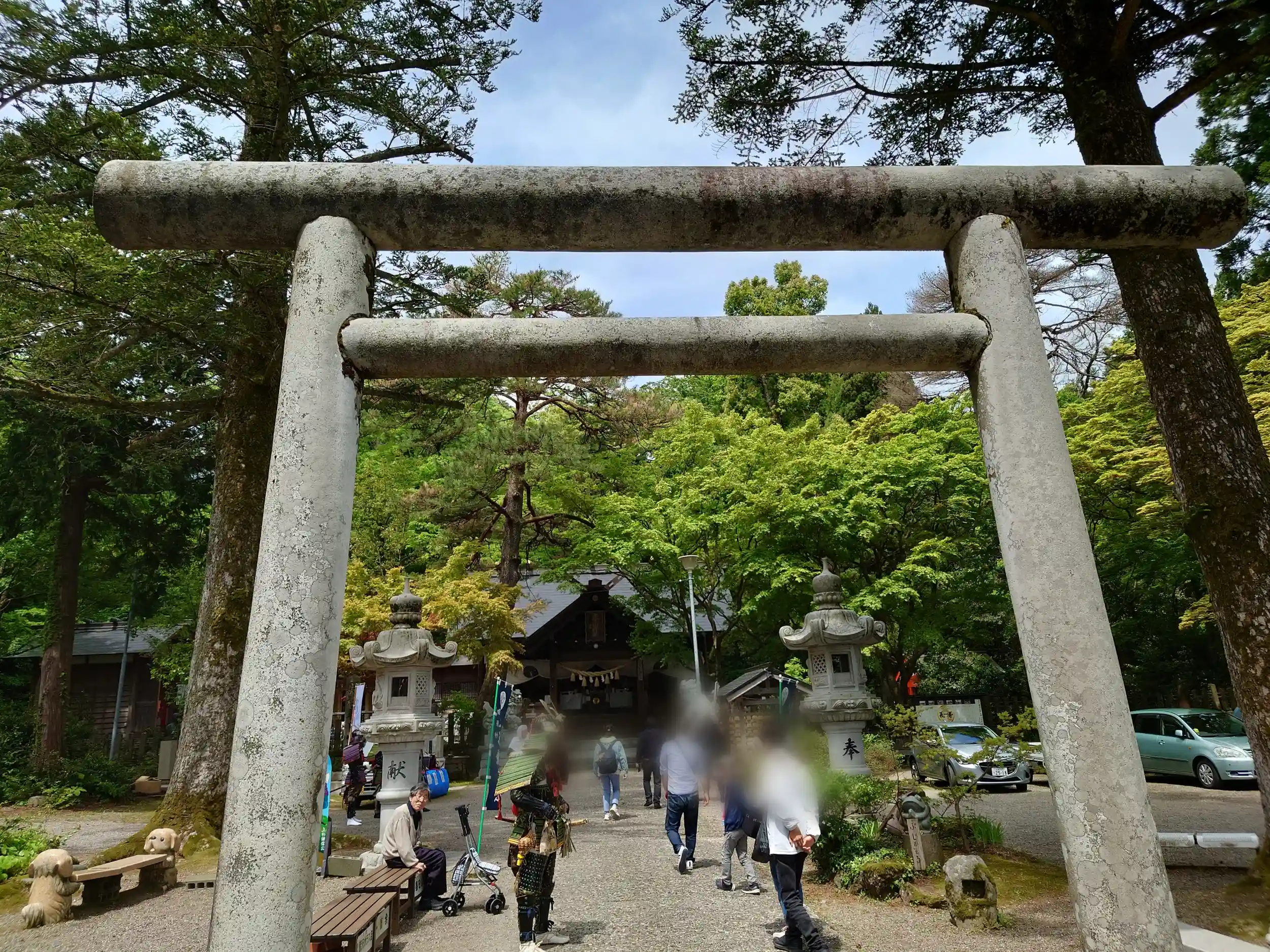 連休中だったからかイベント的なものをやっていて、上杉謙信公に扮する方が参拝客に「写真撮りませんか」と声をかけていました。