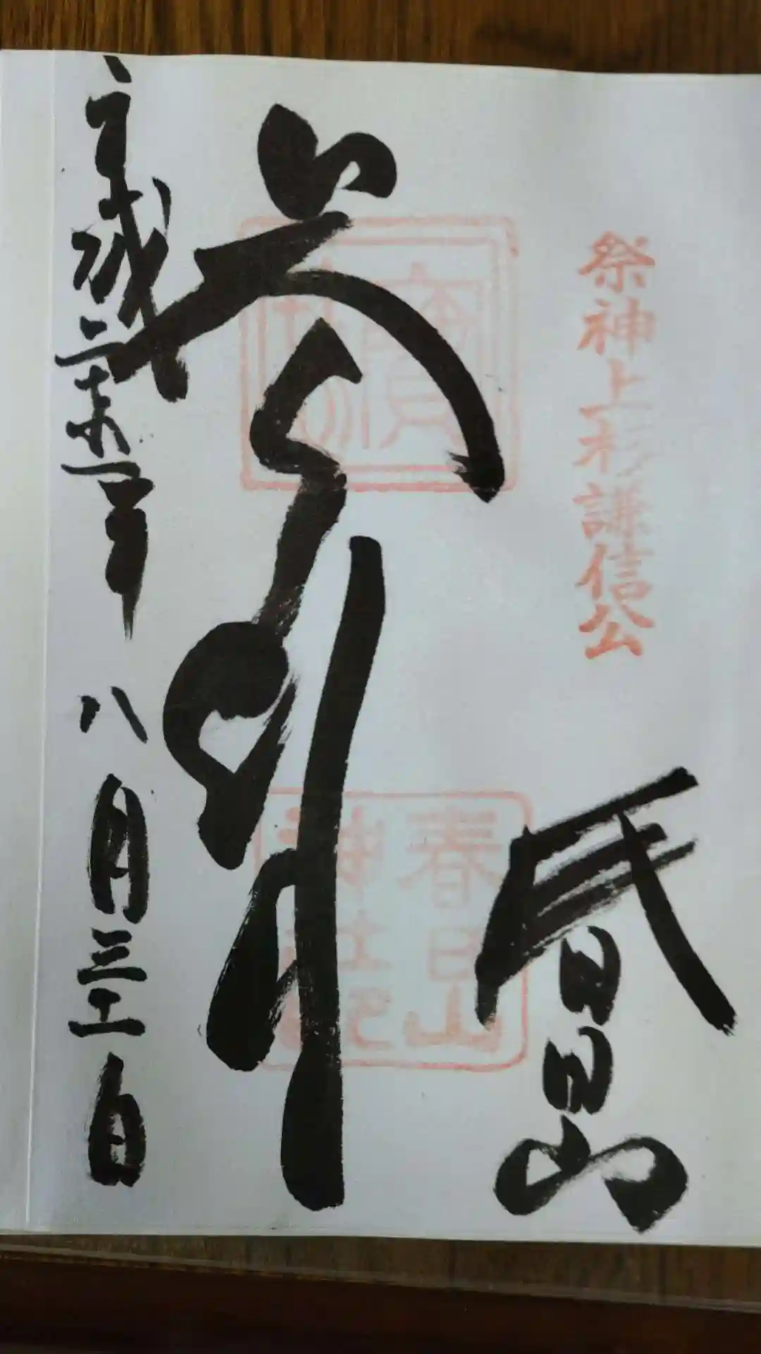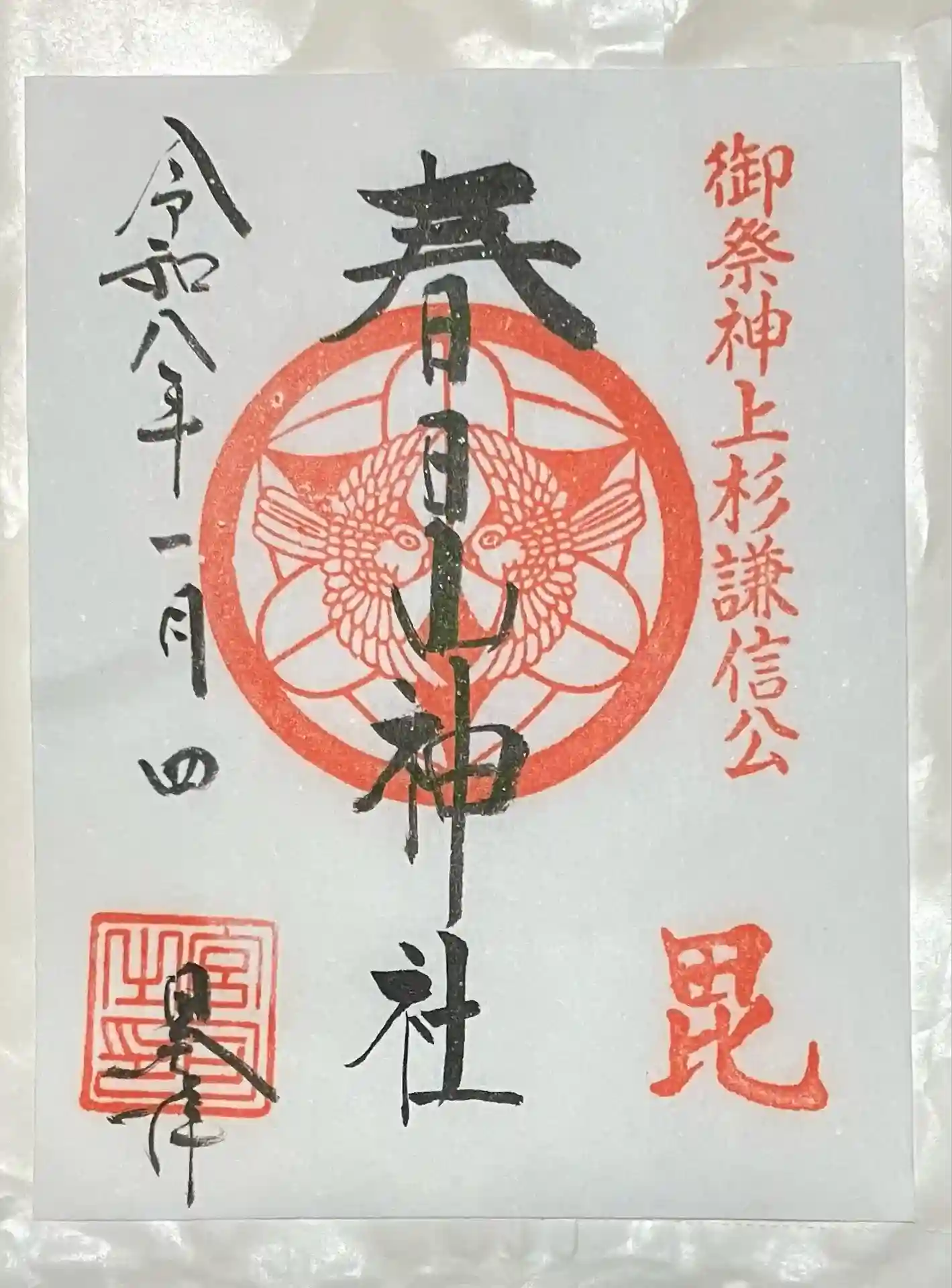 春日山神社の御朱印を書置きでいただきました。