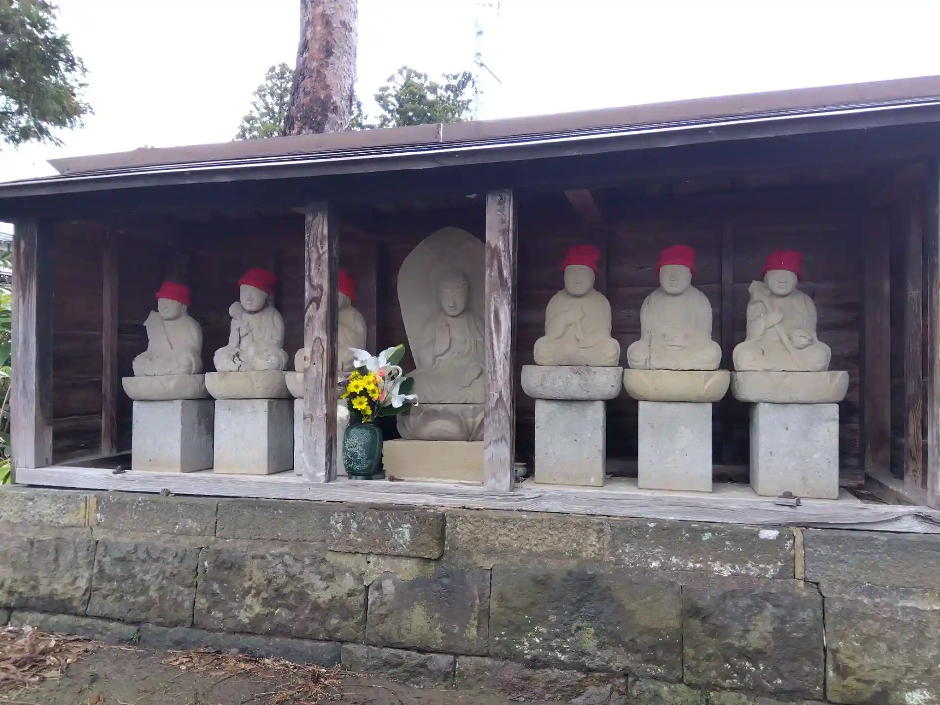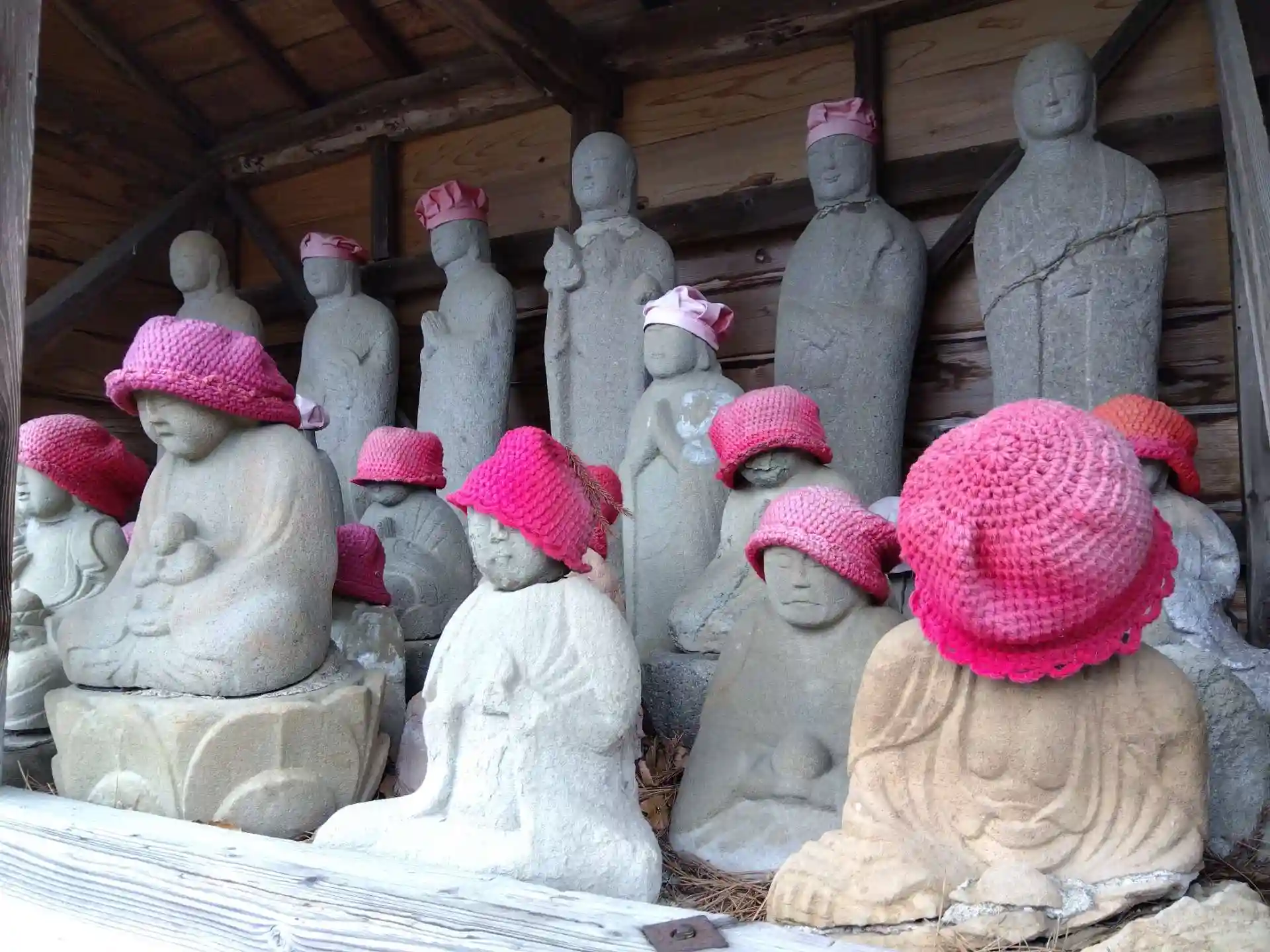 参道沿いに赤いお帽子かぶった石仏たくさん😄