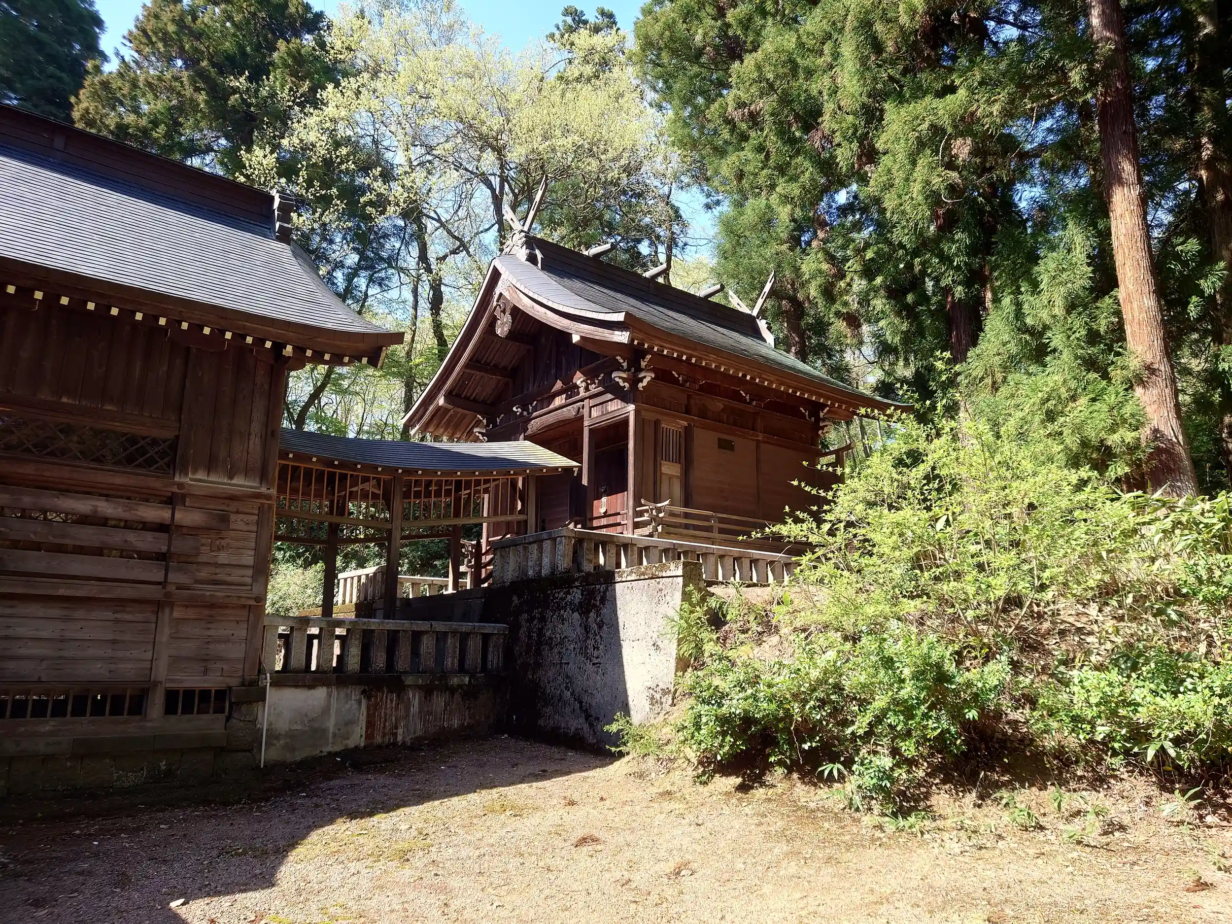 山城である「鮫ヶ尾城跡」と、その裾野に鎮座する「斐太神社」。