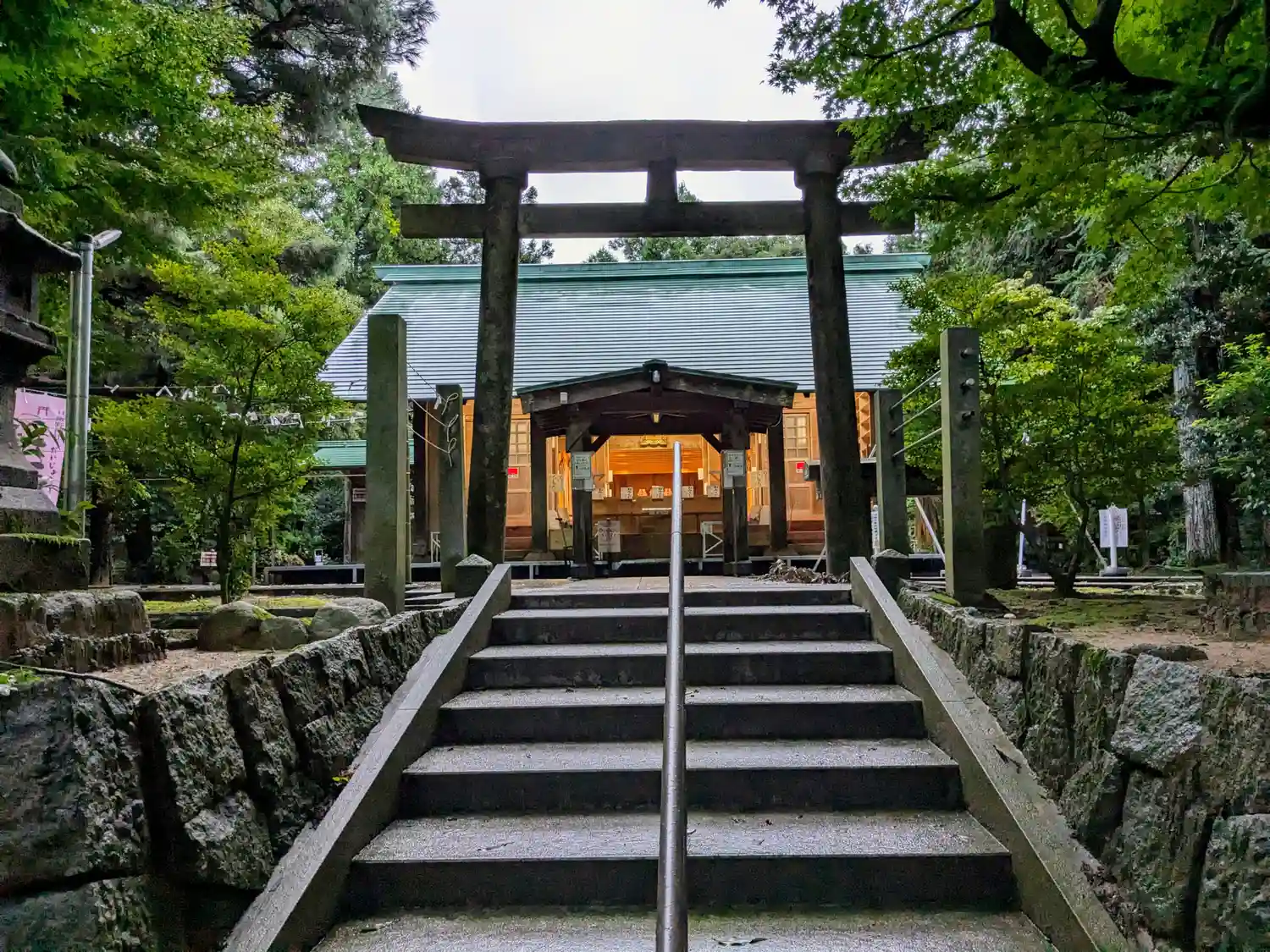 随身門の先は少し急ですが、手すりのあるのぼりやすい石段になっています。