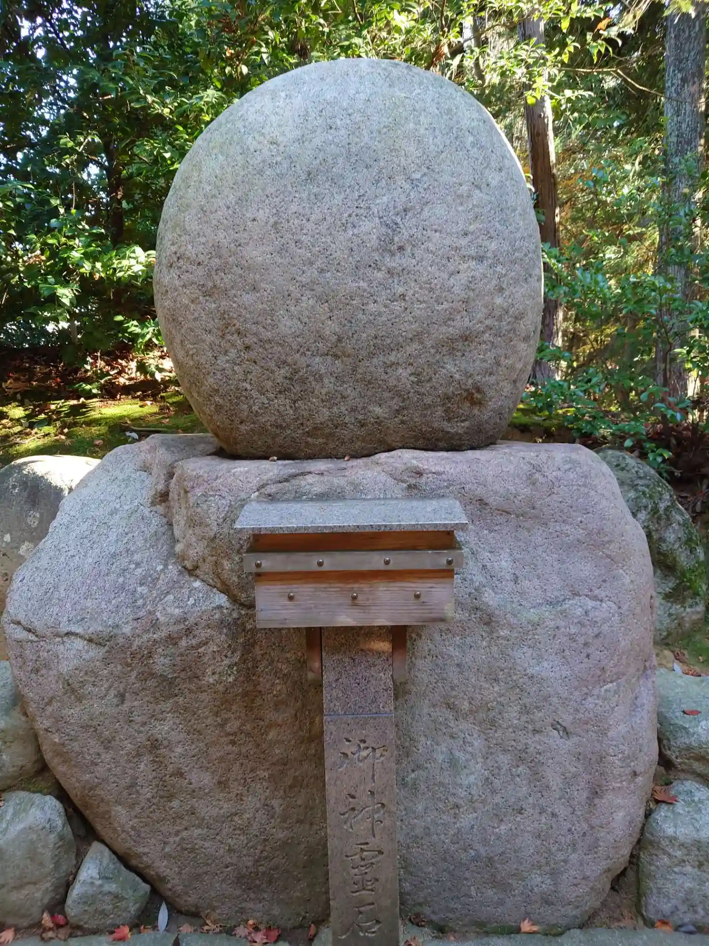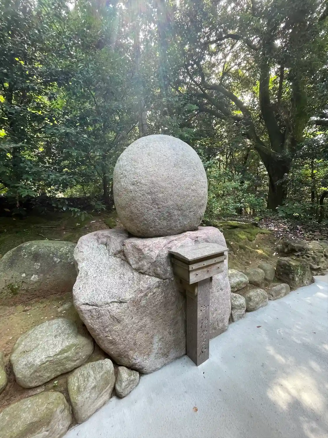 御本殿裏にはとんがり石と丸石