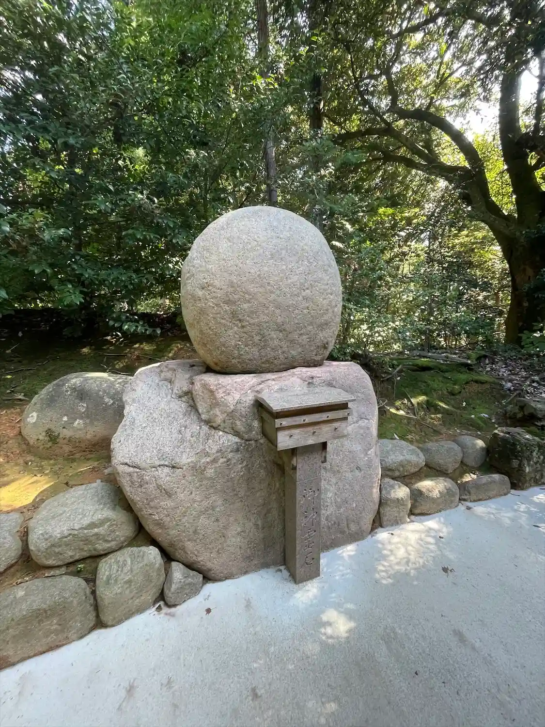 左手をとんがり石に、右手を丸石に置くと負の力をとんがり石が吸い込み、正の力を丸石がもたらすといわれています。