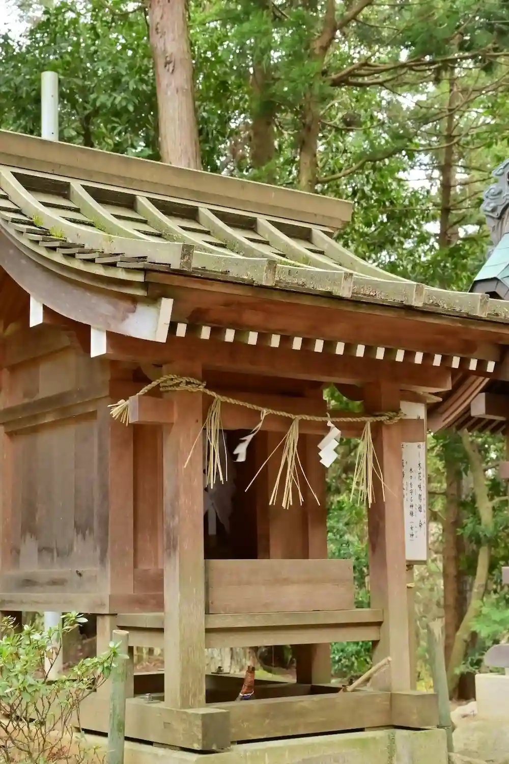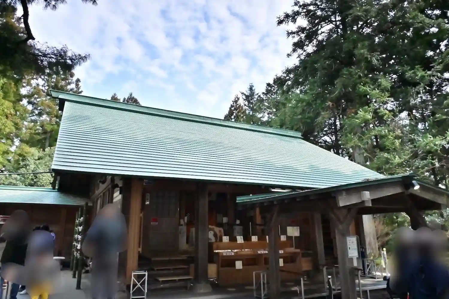 駐車場にある授与所と御祓所。大幣が自由に使えるようになっています。