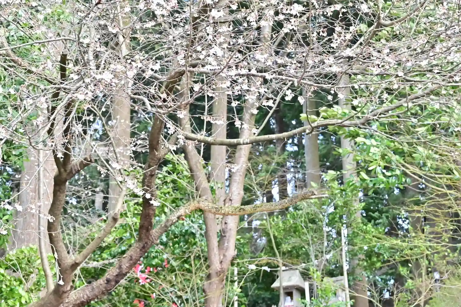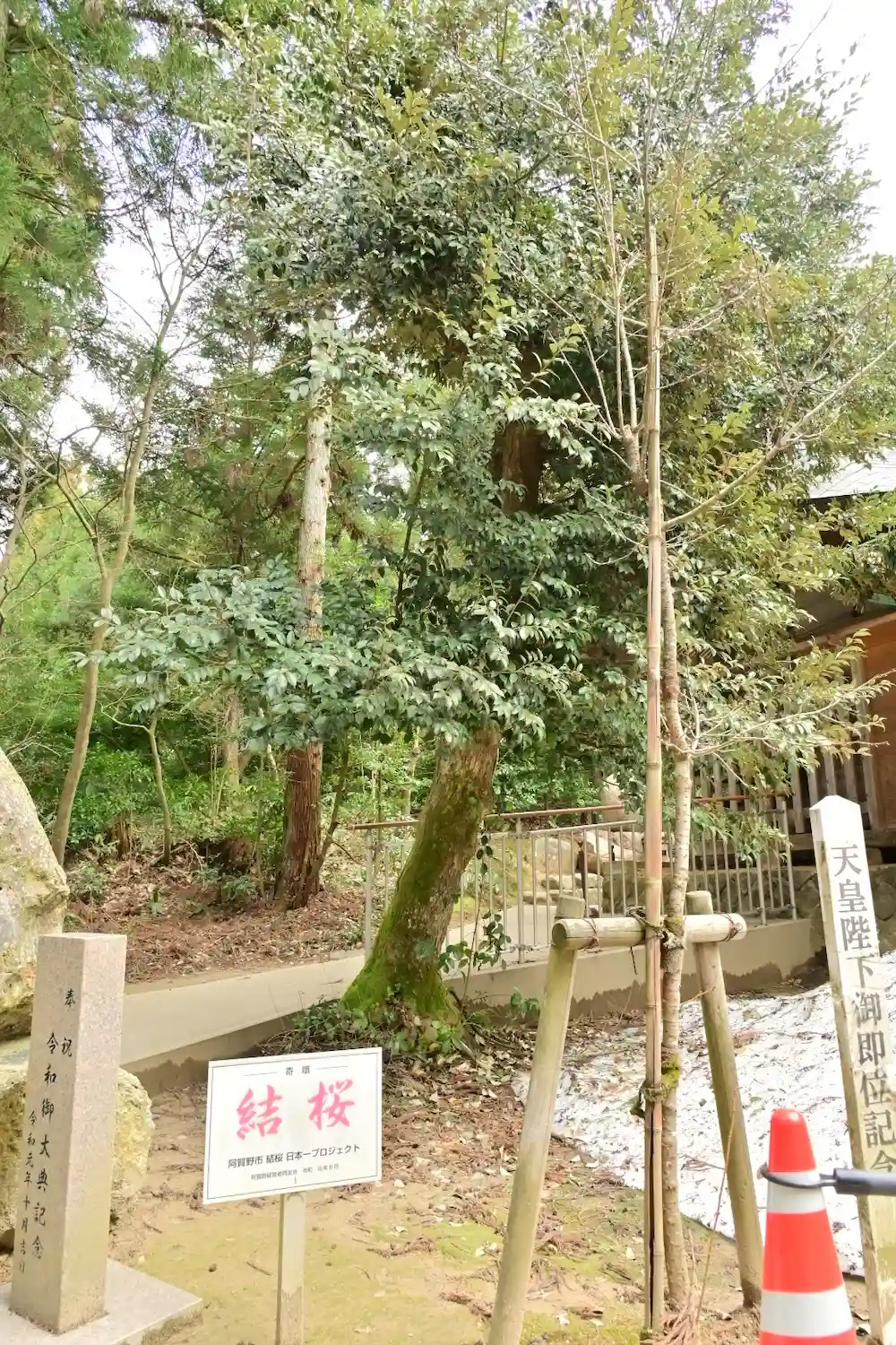 社殿両側に結桜