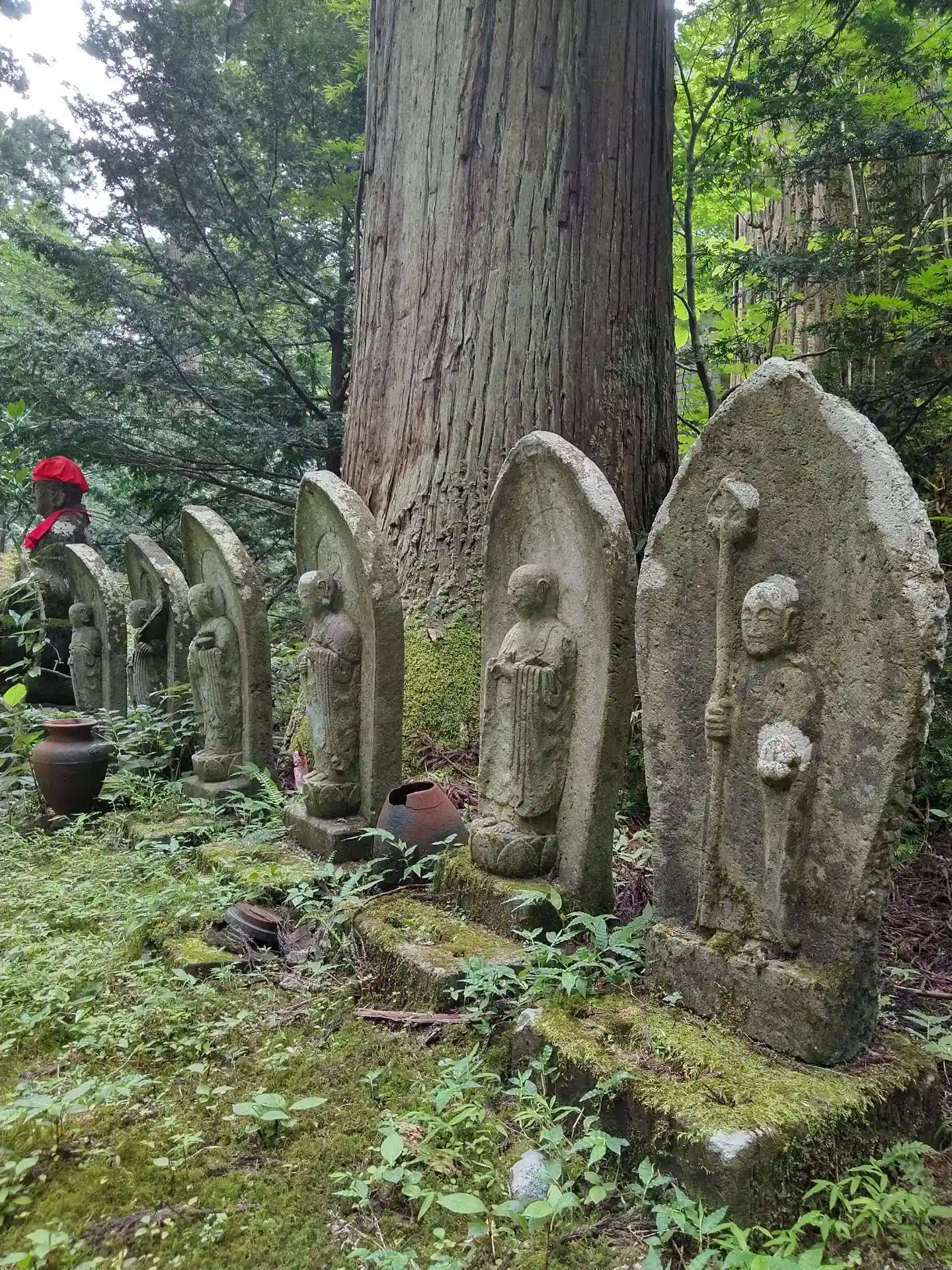 道沿いは杉の大木に覆われていて常に日陰で、所々にお地蔵さんや観音様があり、