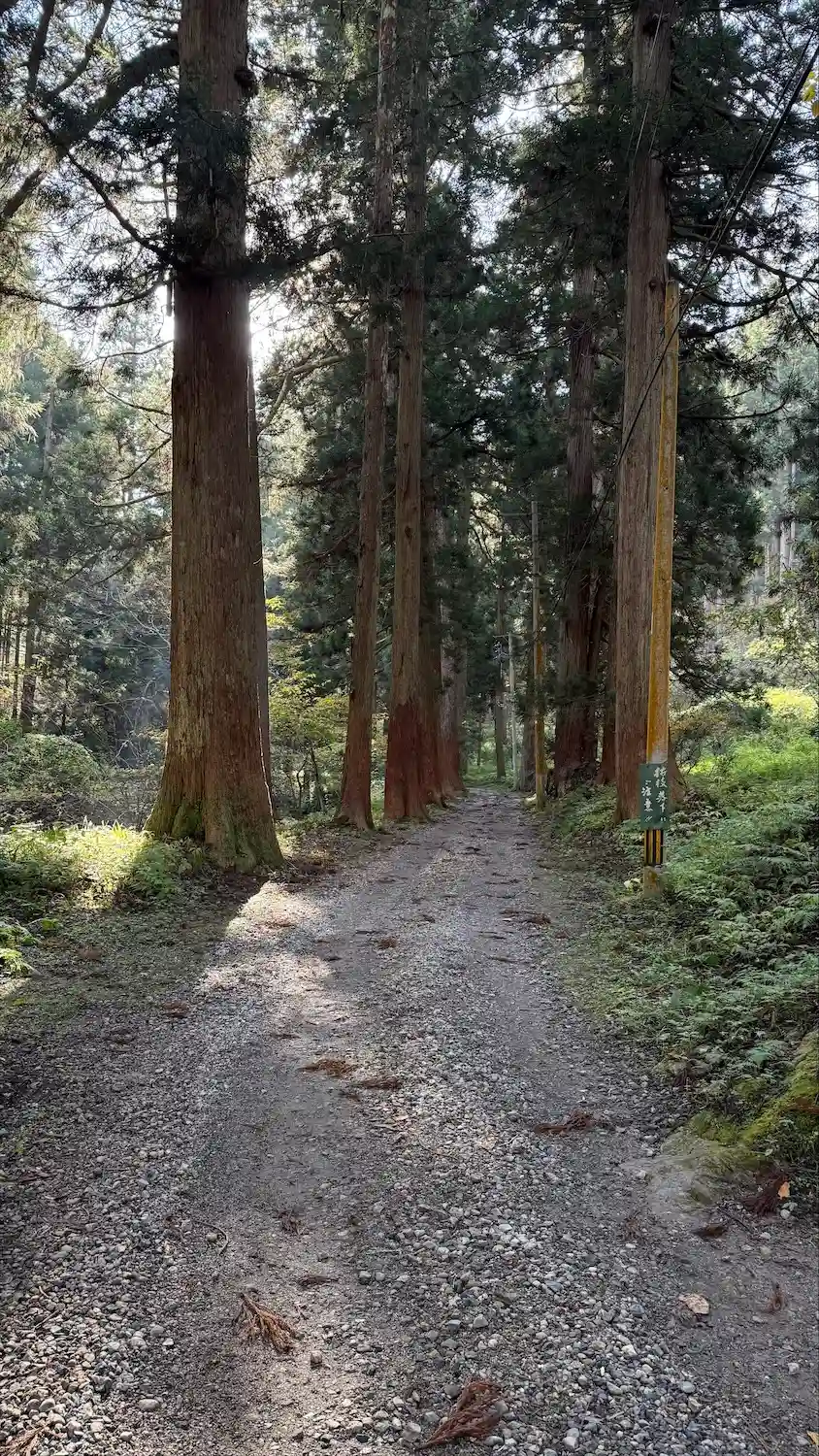 駐車場から砂利道を約10分程度歩いてお寺へ向かいます。