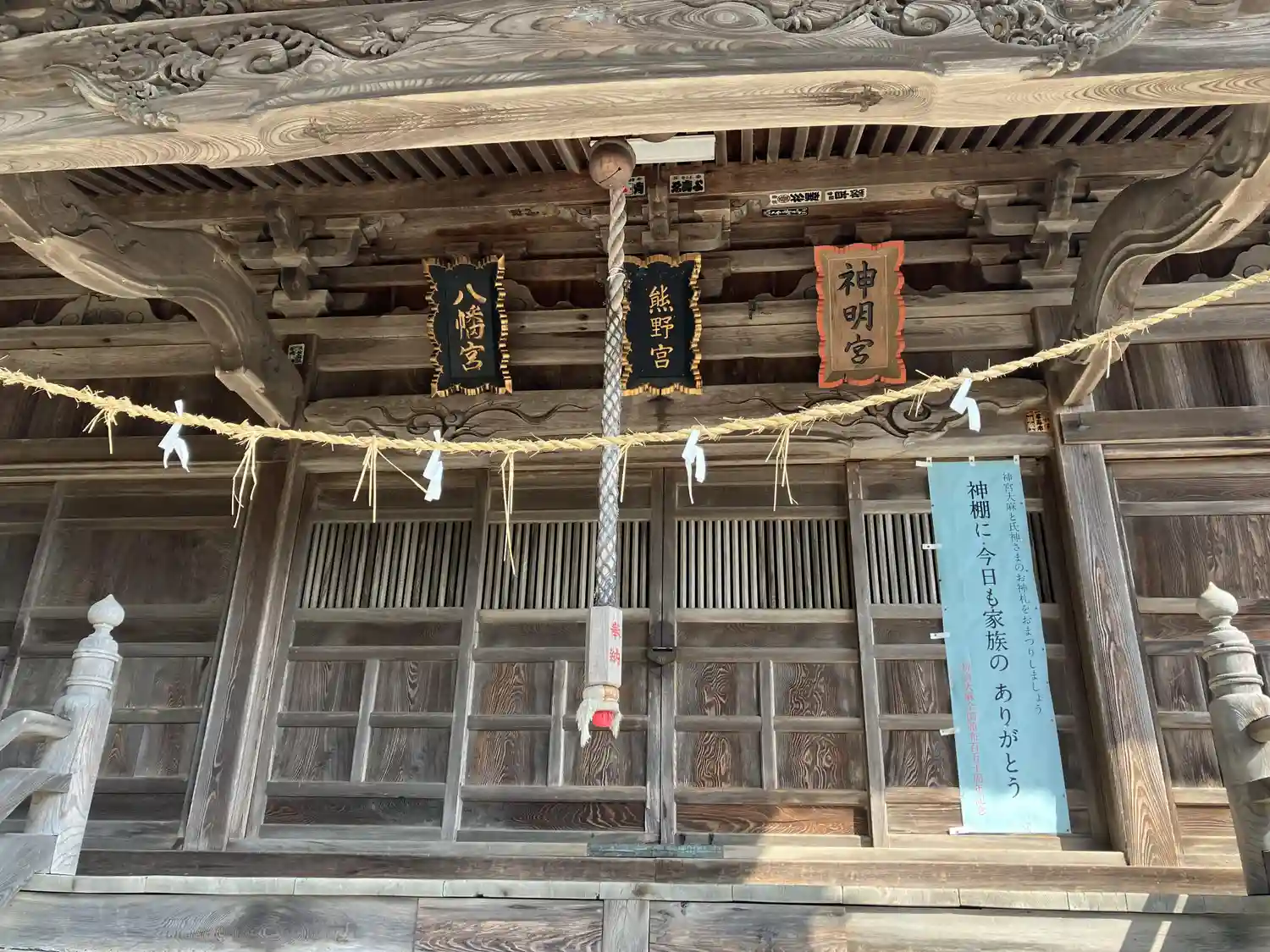 | ご祭神 | 《合》天照大神,誉田別命,建御名方命,級戸辺命,大山積命,倉稲魂命,久那戸命,水速売命,彦火火出見命,須佐之男命,《主》伊佐那岐尊,伊佐那美尊,事解男命,速玉男命 |
