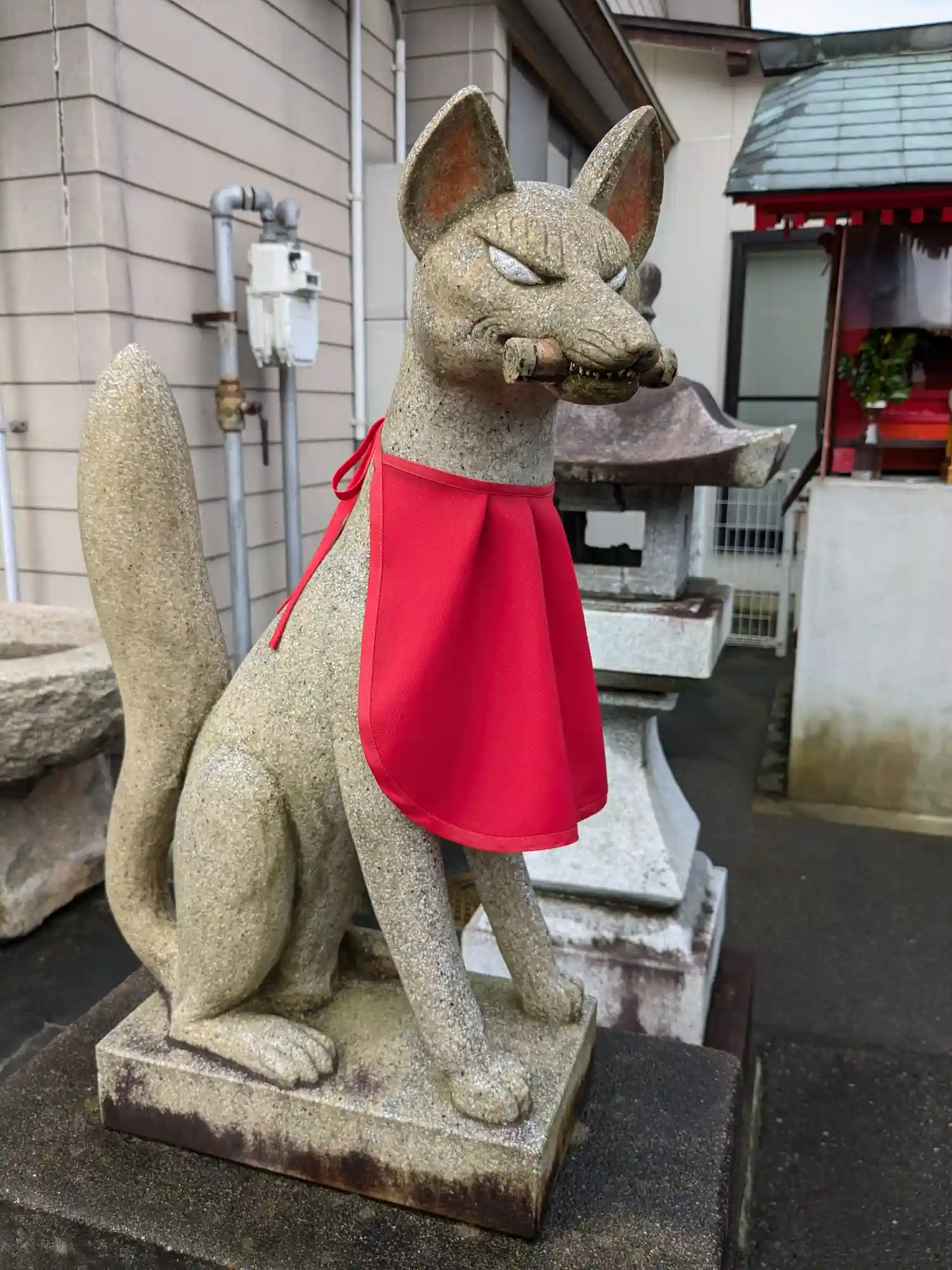 温泉地を守る眼光鋭い狛狐様✨