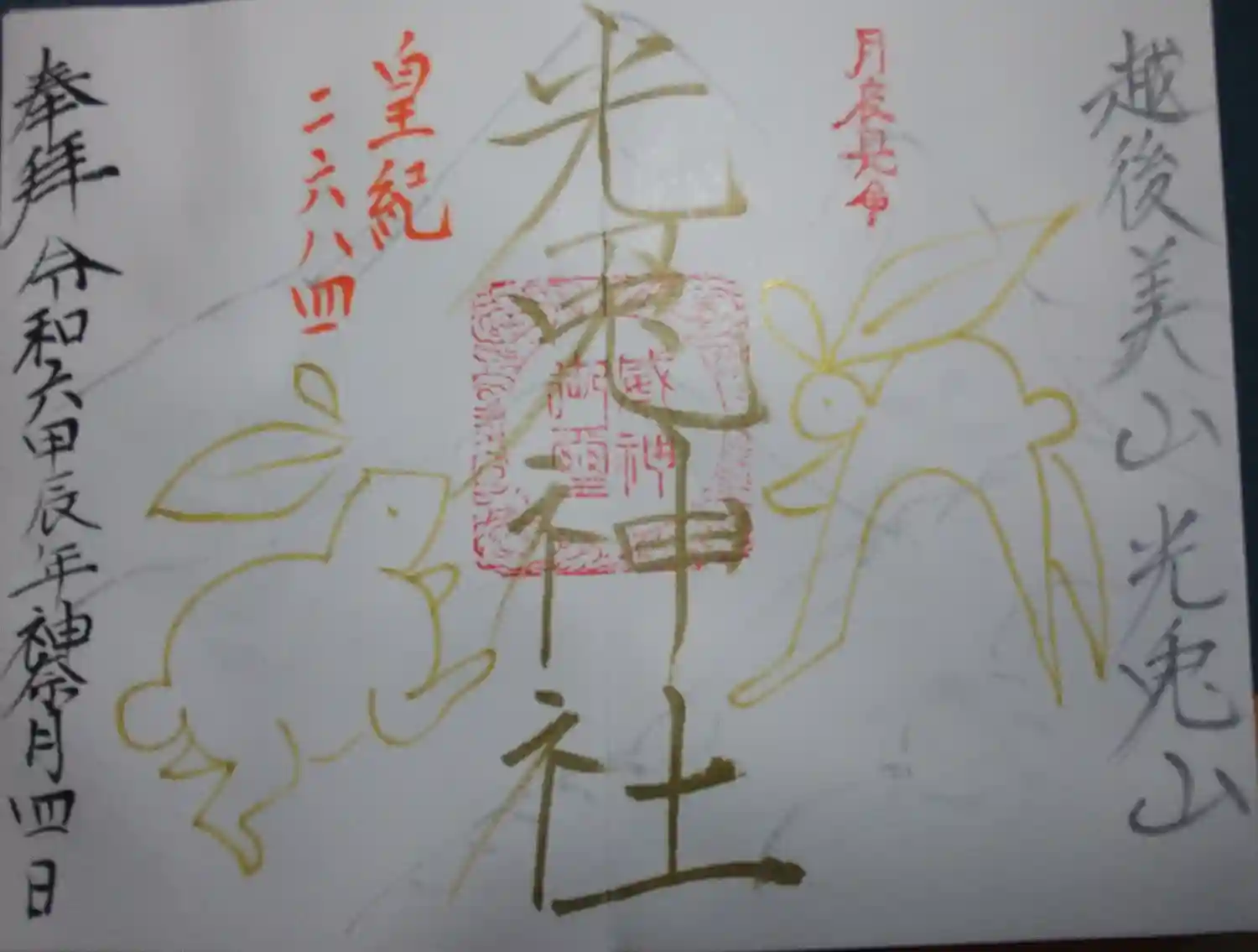 可愛い兎が描かれてる御朱印を直書きで拝受していただ…