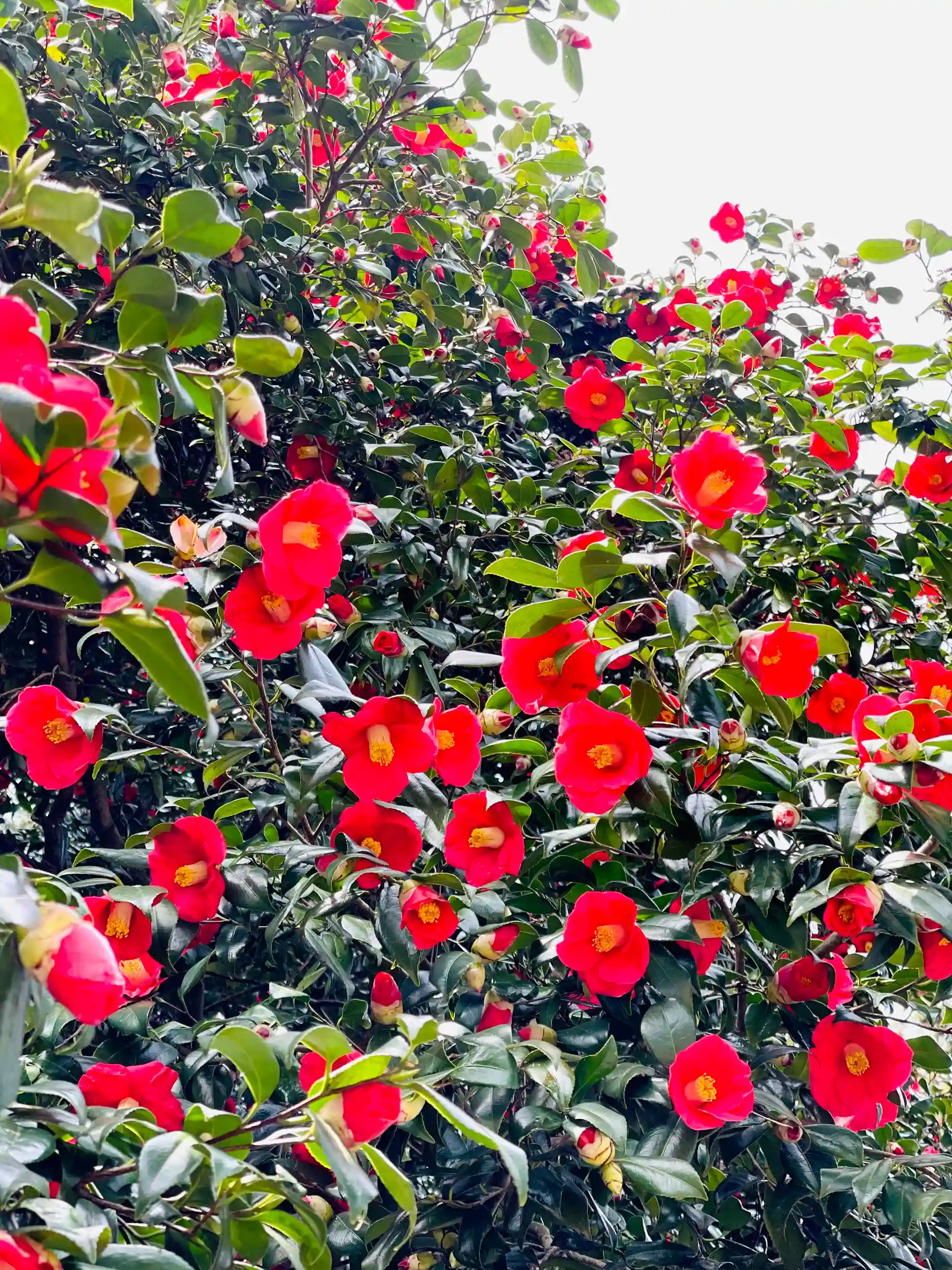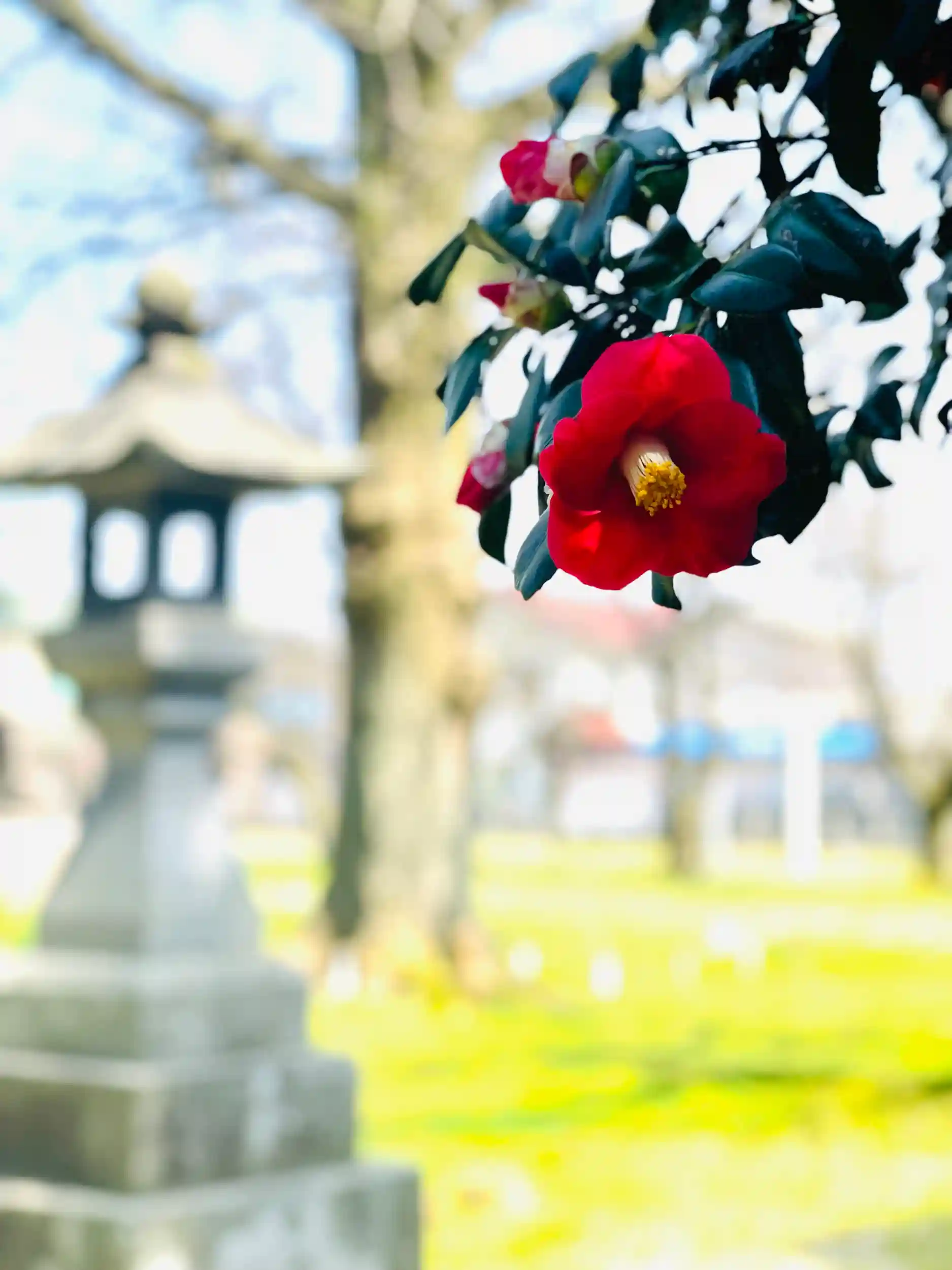 境内の大きな椿の木も見頃をむかえ、次々に咲き誇っております。