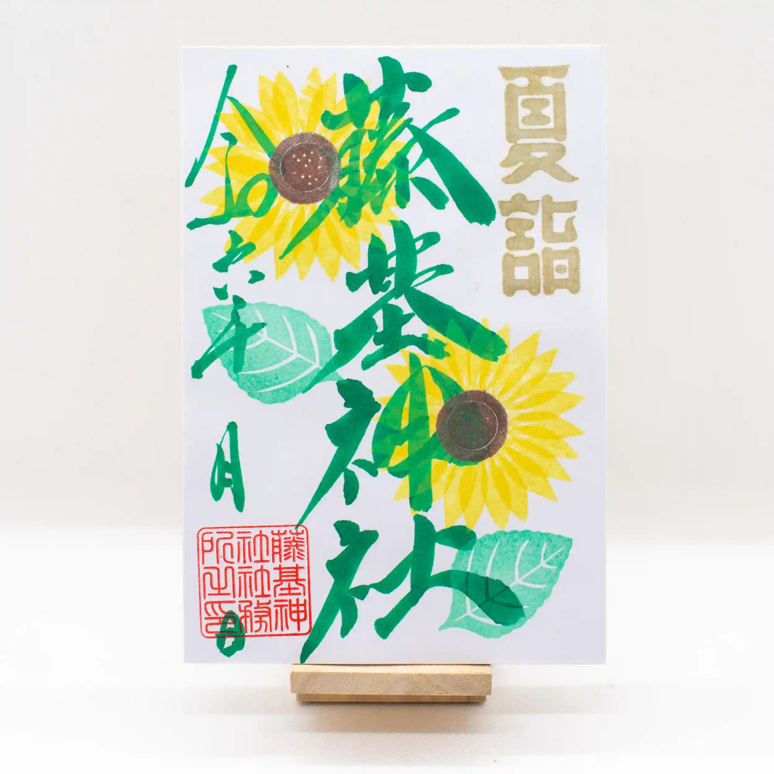 太陽に向かって力強く咲くひまわりをあしらった御朱印です。